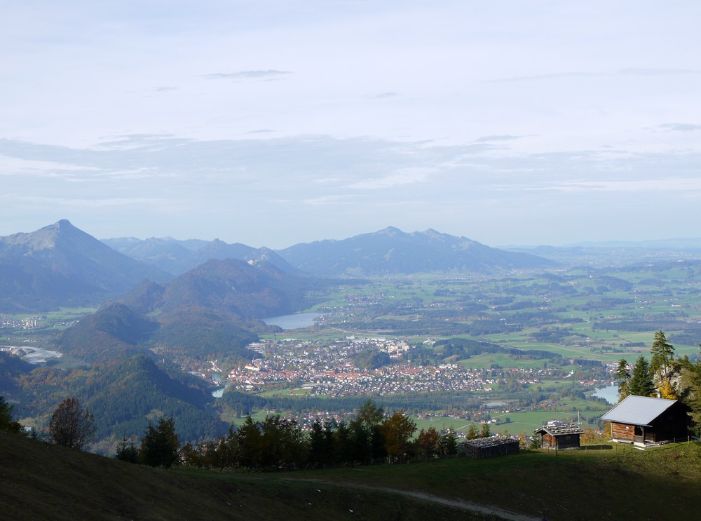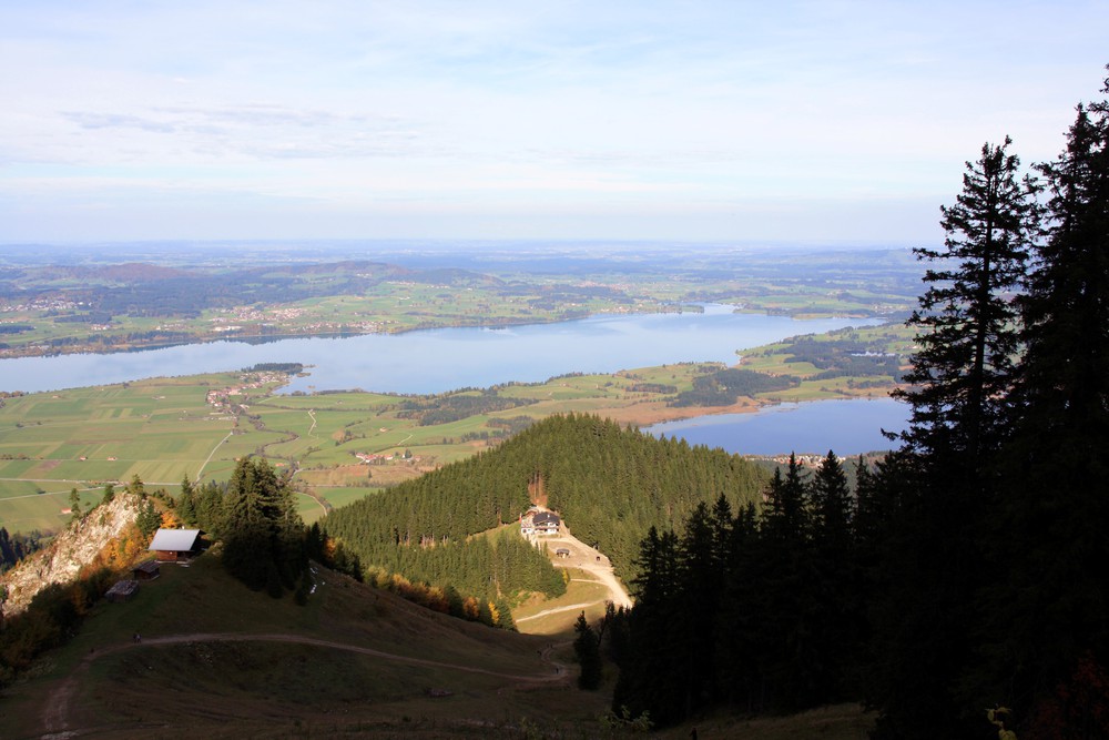 La balade se poursuit jusqu’à un relais de montagne caché dans les sapins. La vue dégagée sur la vallée et sur les châteaux en fait un arrêt idéal: Schwangau et ses bâtisses d’un autre temps commencent tout juste à se deviner près du lac. Le soleil est désormais bien levé et l’été indien prend finalement tout son sens en ce mois d’octobre.