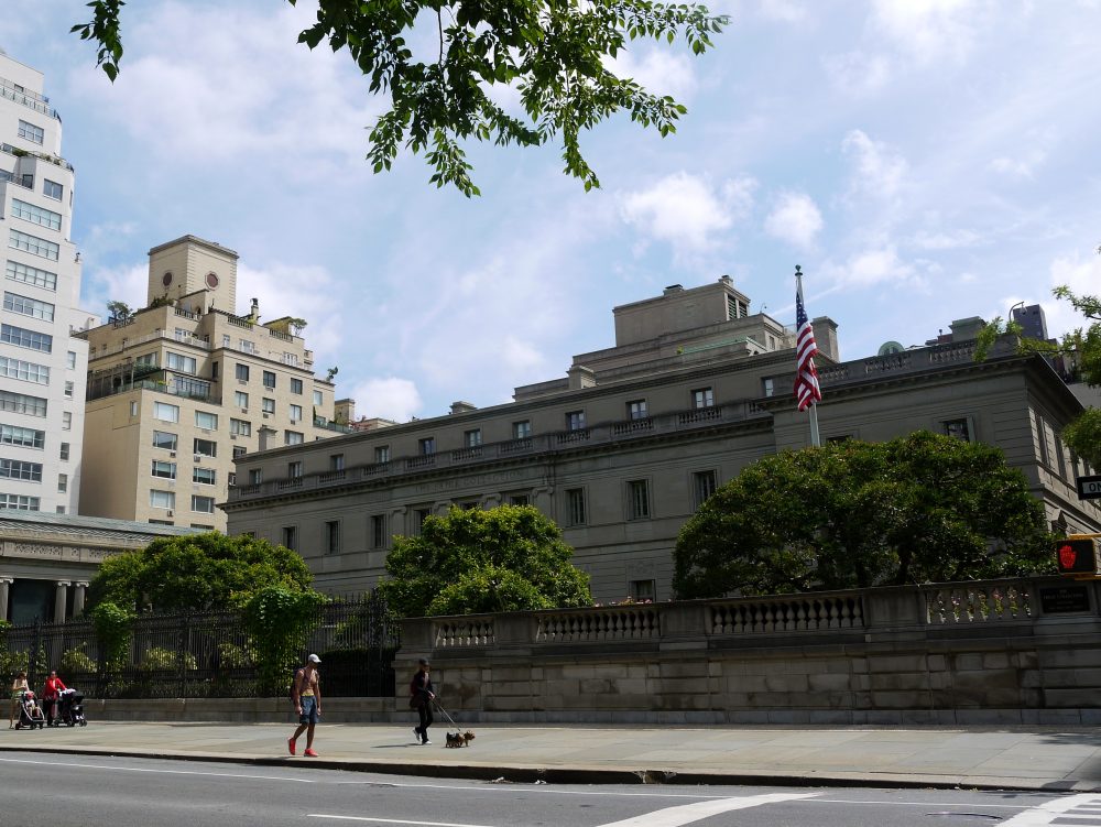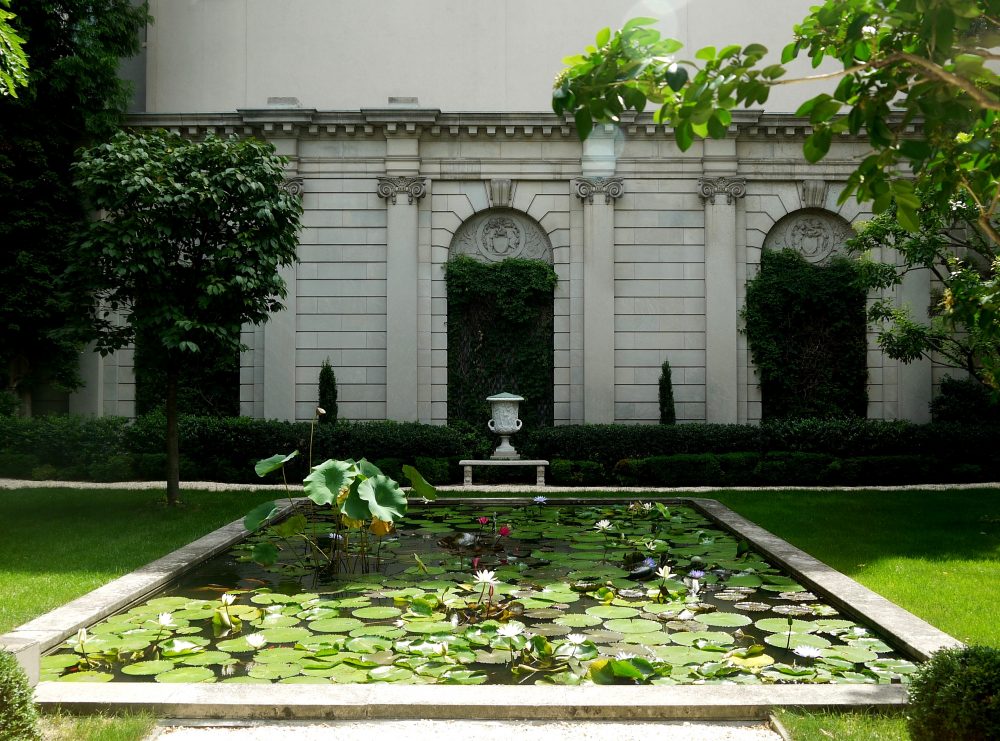 Encore un peu sous l’effet du décalage horaire, nous commençons notre matinée culturelle dont la Frick Collection, située dans l’allée des Millionnaires, est la première étape. En poussant la porte de l’ancien hôtel particulier de Henry Clay Frick, on fait un saut dans le XXe siècle où les salons se succèdent autour d’un patio fleuri. L’édifice abrite des peintures du XVIIIe et une collection d’émaux bien qu’on vienne surtout admirer la salle Fragonnard. Les visiteurs sont peu nombreux et une heure nous suffit pour faire tranquillement le tour du musée.