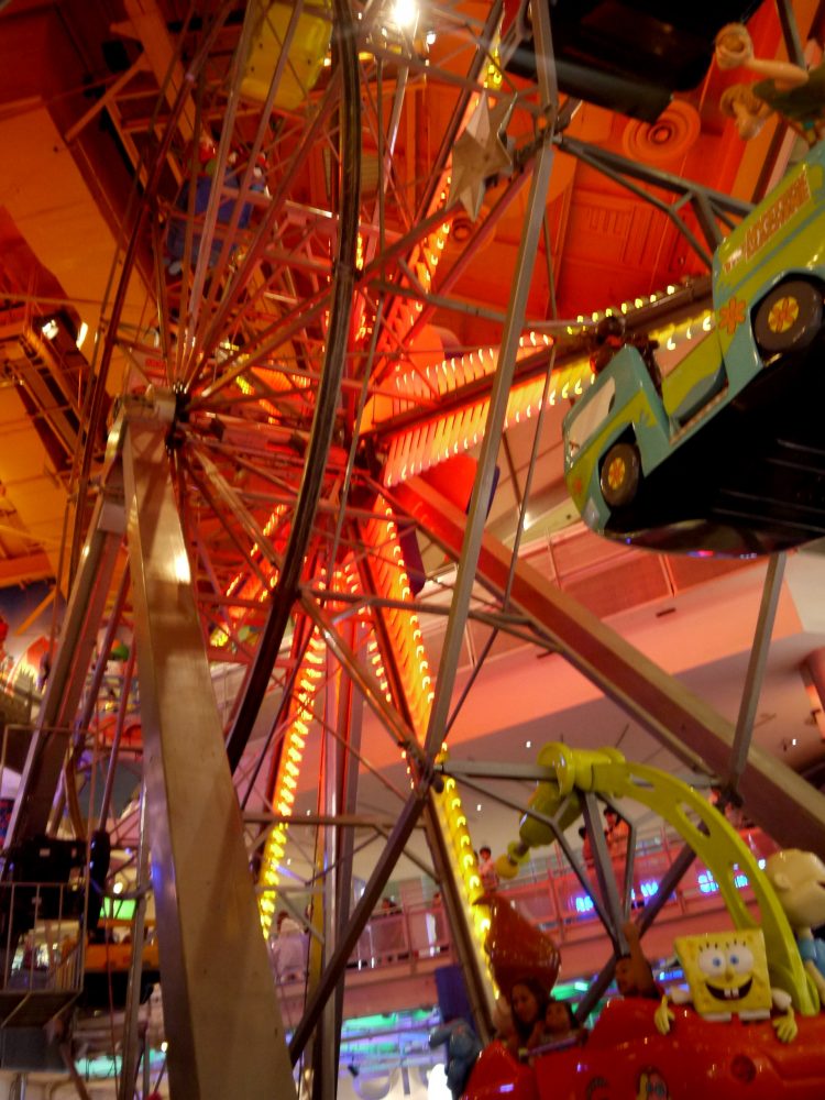 Un dernier arrêt au Toys’r Us nous fait découvrir une grande roue au décor de jouets et de dessins animés. Des nacelles Scooby Doo et Monopoly tournoient sous les lumières colorées pendant que l’on observe les étages supérieurs depuis la rambarde. Au dessus de nous, de gigantesques sculptures de Lego reprennent tous les symboles et monuments célèbres de la ville. On tombe tour à tour sur un dinosaure, Superman ou une maison de Barbie à taille humaine en circulant dans les allées. A la sortie, un stand Wonka reprend les décors féériques de Charlie et la chocolaterie. La journée s’achève sur ces notes enfantines et nous retournons à notre auberge avec des étoiles plein les yeux.
