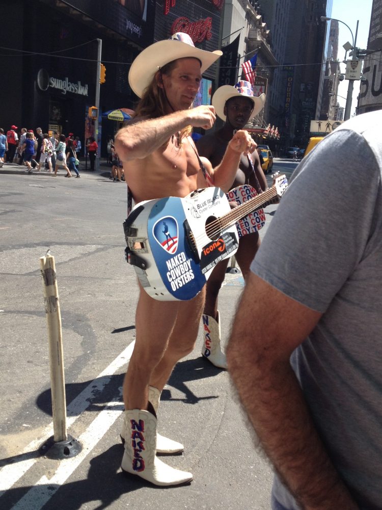 En remontant vers Times Square, nous rencontrons les deux Naked CowBoys avec leurs bottes et leurs guitares. Pas le temps de s’attarder cependant, le New Amsterdam Theatre nous attend pour une représentation d’Aladdin, The Musical.