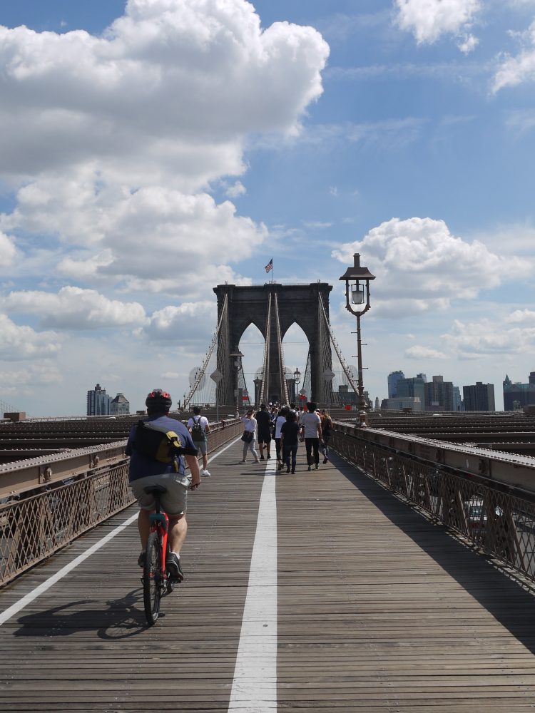 A l’est du City Hall, on termine la visite du quartier par la traversée de l’emblématique Brooklyn Bridge et sa vue sur le quartier Downtown de Manhattan. On veille à rester sur l’allée piétonne de près de 2km, régulièrement rappelés à l’ordre par les cyclistes qui traversent à toute vitesse. A l’autre bout du pont, le Brooklyn Bridge Park s’étend sur une longue partie du front de mer de l’East River. Nous ne faisons que le longer avant de regagner le métro voisin pour rejoindre le Village.