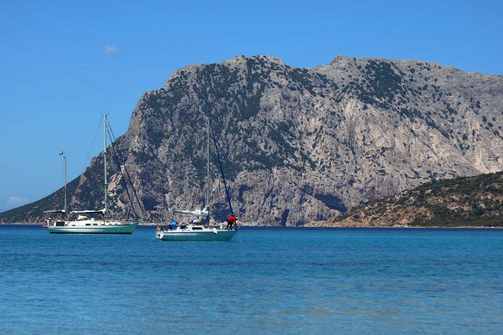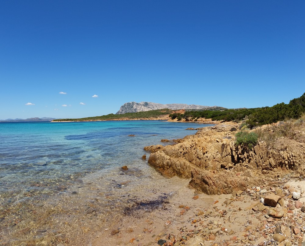 La petite route qui y mène est relativement étroite et traverse la campagne. On l’adore tout de suite avec ses paysages qui sentent bon les vacances. Au bout de la route, une bifurcation s’impose à nous. A gauche, un chemin de terre et de sable descend jusqu’au parking de la plage. A droite, une route bitumée monte sur les hauteurs vers un village de pierre. On l’emprunte pour admirer la vue avant de s’installer sur nos serviettes. Nous ne serons pas déçus par ce détour qui nous offre une superbe vue sur les îles de Tavolara et Molara et leur réserve marine. D’en haut, on distingue les contours de la presqu’île bordée par la mer Tyrrhénienne.