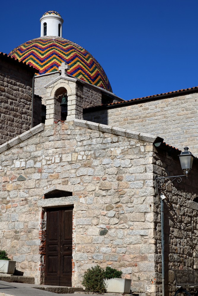 A la recherche d’une glace pour nous rafraichir, nous partons vers Olbia à presque 45 minutes de la plage. C’est finalement l’arrivée en ville qui nous refroidit. Comme à Alghero, les alentours du cente ville aux bâtisses en béton sont complètement dénuées de charme. On laisse la voiture dans une rue parallèle au centre avant de tomber par hasard sur l’église San Paolo Apostolo et sa coupole de faïence colorée. Quelques ruelles entourent le Corso Umberto I, artère principale d’Olbia bordée de boutiques qui mène jusqu’au port. Avant de partir, on y cherche des souvenirs de Sardaigne à ramener dans nos valises déjà bien pleines.