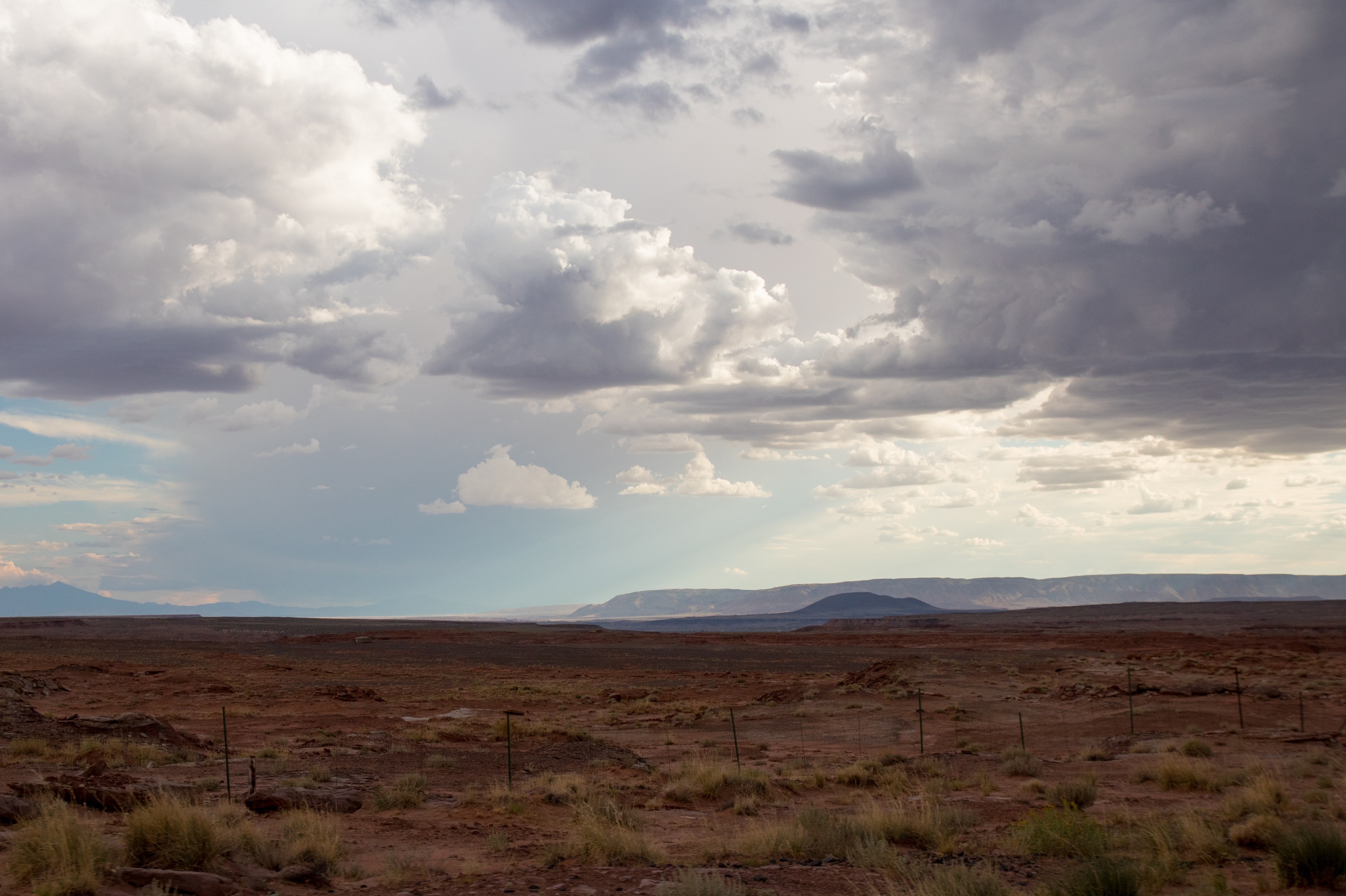 Les deux heures et demi qui suivent sont pleines de couleurs. Au dessus de nos têtes, le ciel est plus que changeant. Les nuages y dessinent des formes curieuses et baignent le paysage de lumières ondoyantes. A notre arrivée, le soleil se couche discrètement sur Monument Valley et colore la pierre de nuances pastelles. Il fait presque nuit quand nous prenons possession des deux petites maisons individuelles, flambant neuves et toutes équipées, qui nous hébergeront ce soir. Après un repas des plus copieux, on passera finalement un long moment dans la nuit noire, trépied et appareil photo à la main pour capturer les milliers d’étoiles luisant dans le ciel avec plus ou moins de succès. Que la nuit est belle à Monument Valley…