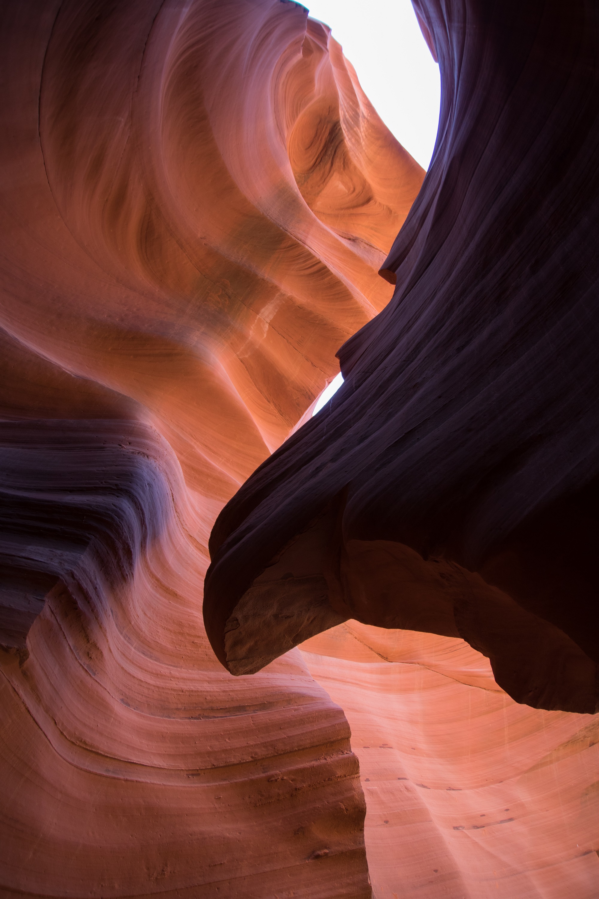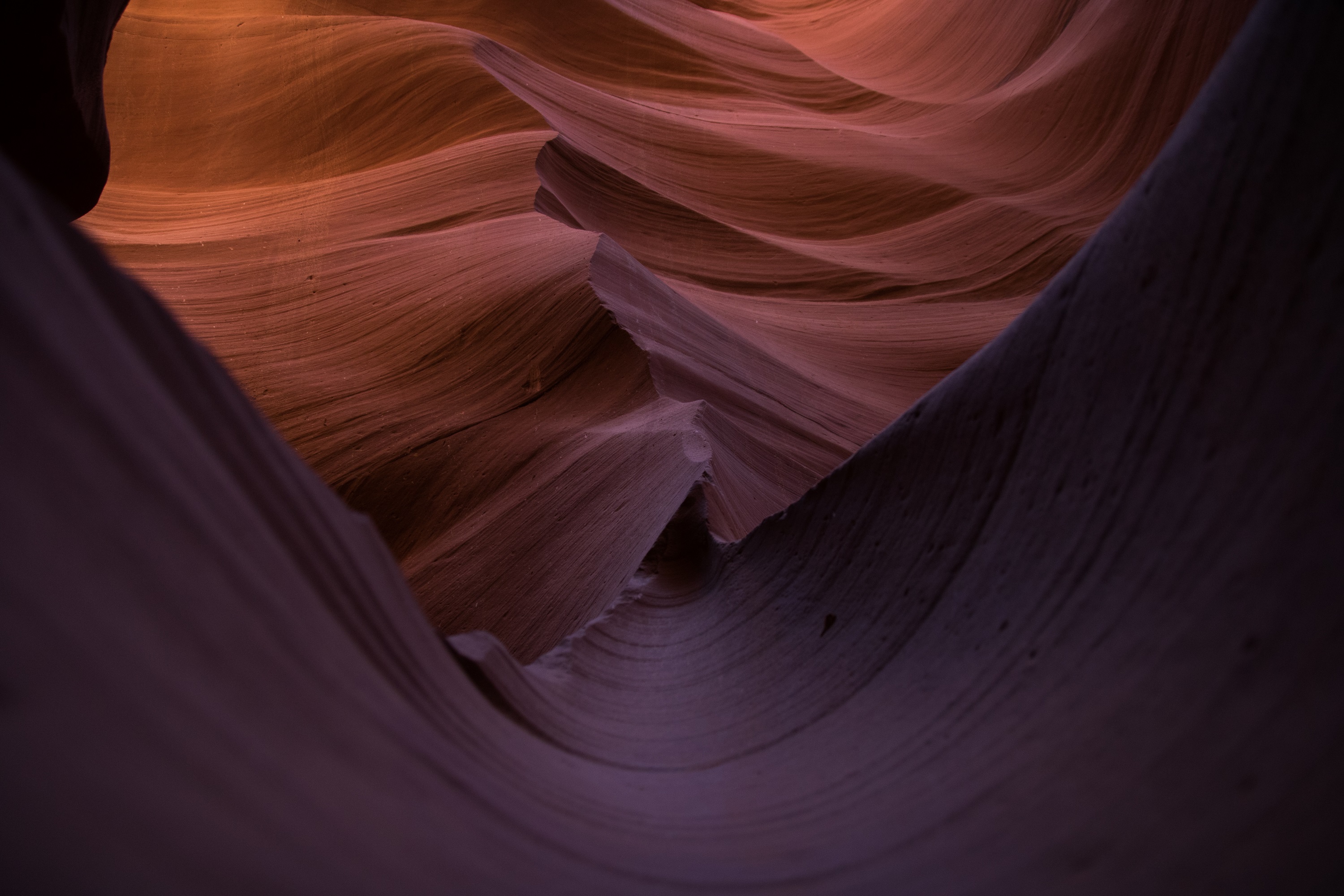 Il n’est pas encore 8h30 quand nous arrivons à Antelope Canyon, déjà tout barbouillés de crème solaire et cachés sous les chapeaux et lunettes de soleil. Nous partons pourtant ce matin dans le cœur d’un slot canyon, creusé par le vent et le sable dans la roche au fil des années. Deux choix s’offraient à nous: Upper canyon, le plus populaire et donc fréquenté ou Lower canyon, le plus exigu et le plus escarpé. Sans la moindre hésitation, nous optons pour le second choix en espérant profiter du lieu plus calmement.