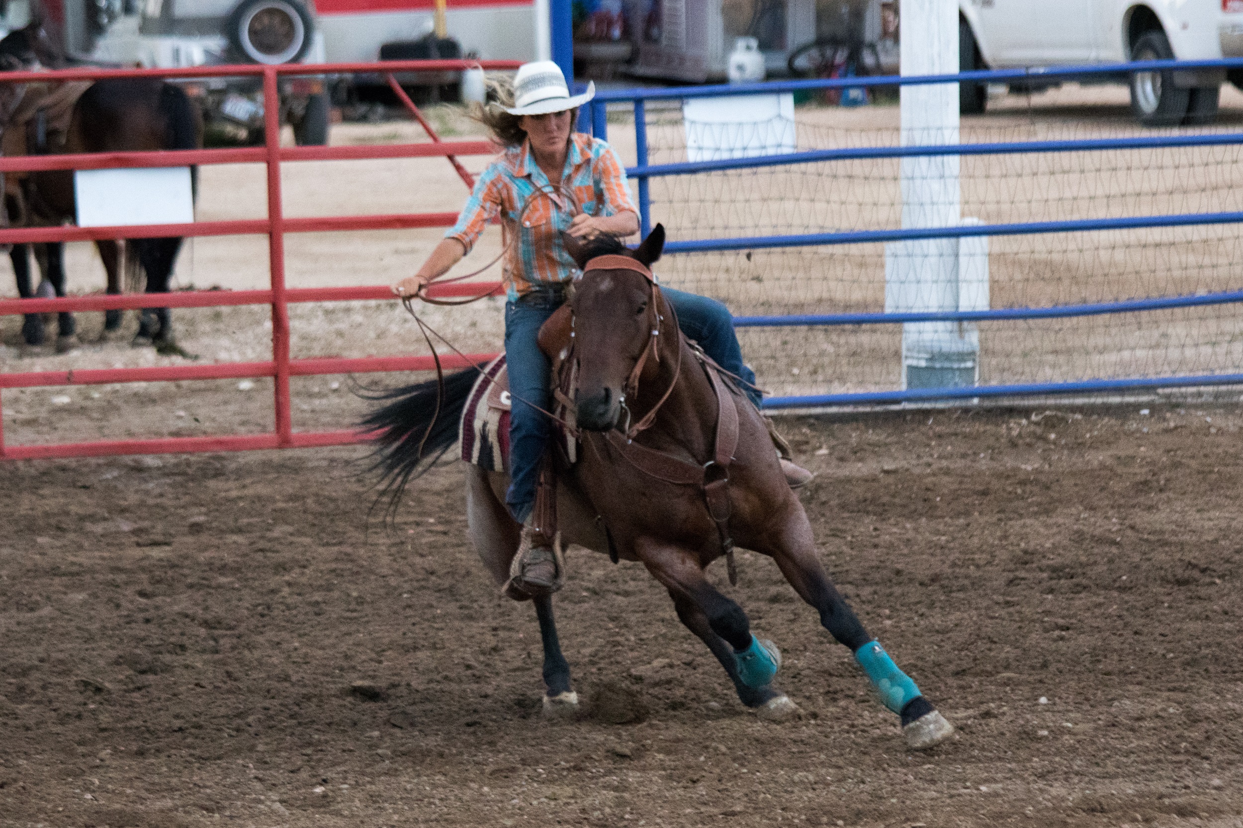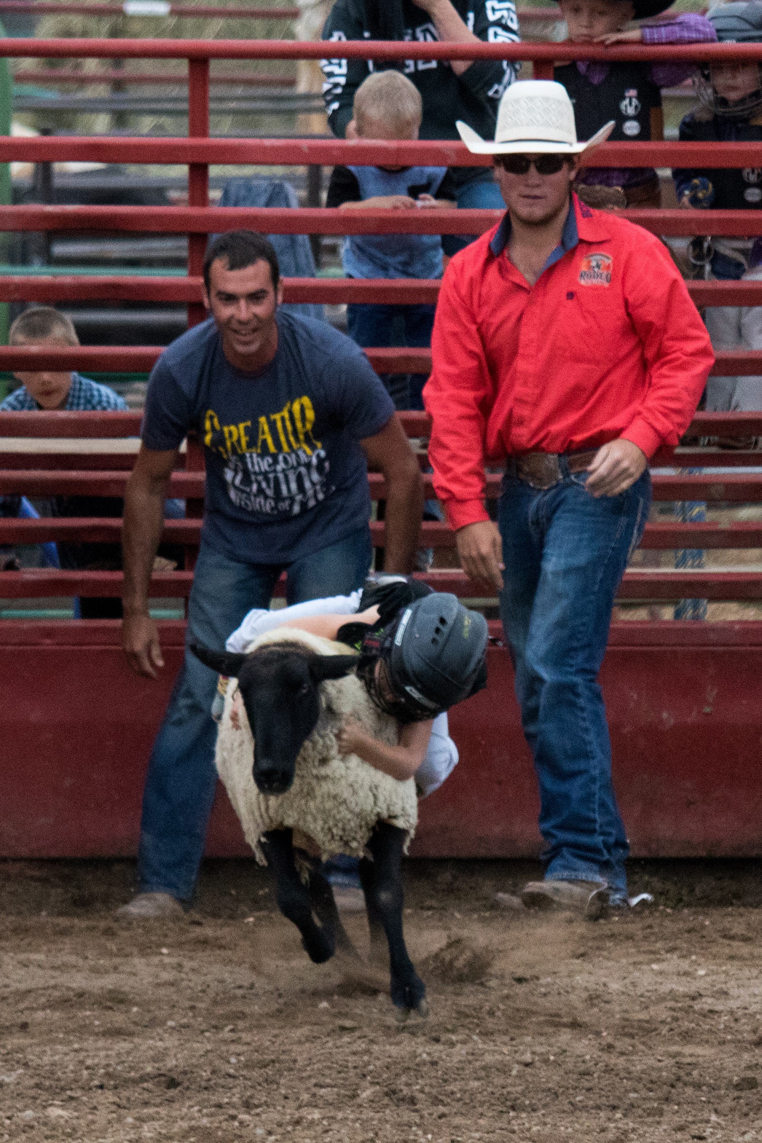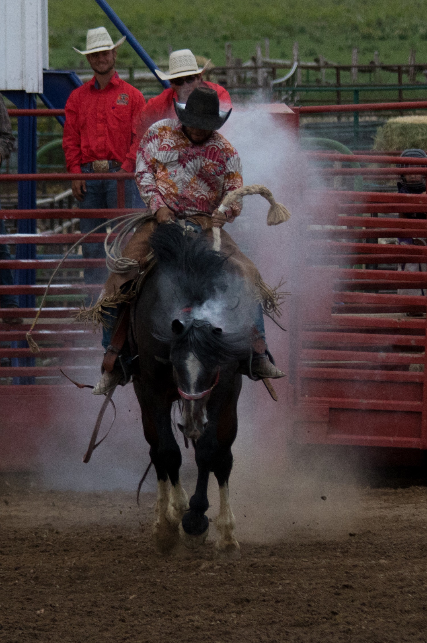 A 19h, installés dans les gradins avec des dizaines d’autres touristes, on se prépare à découvrir (en version parc à thème sans doute) une part de folklore made in USA. Sur la piste, toute une petite famille trottine en attendant le début du spectacle. Soudain, l’hymne national résonne, les drapeaux font un tour de piste et chacun se lève respectueusement…. les épreuves commencent. Les premiers courageux se lancent sur le dos de chevaux contrariés et finissent par voler dans le sable au bout de quelques secondes. Cette première épreuve terminée, les enfants entrent en scène, pas effrayés pour deux sous et encouragés par des parents survoltés. On les retrouve avec surprise agrippés comme ils peuvent sur le dos de moutons aux toisons bien fournies. Trois cavalières se disputent ensuite la victoire d’une course d’obstacles avant de laisser la place à d’énormes taureaux peu disposés à se faire monter. Quelques locaux audacieux tentent ainsi de faire un tour de piste sans se faire désarçonner et nous font, au passage, de belles frayeurs. Le spectacle s’achève sur une épreuve de lasso qui nous divise davantage mais qui, sans aucun doute, fait partie intégrante de cette culture de l’Ouest. Hi haaaa !