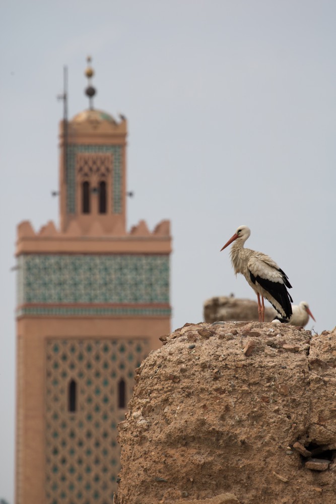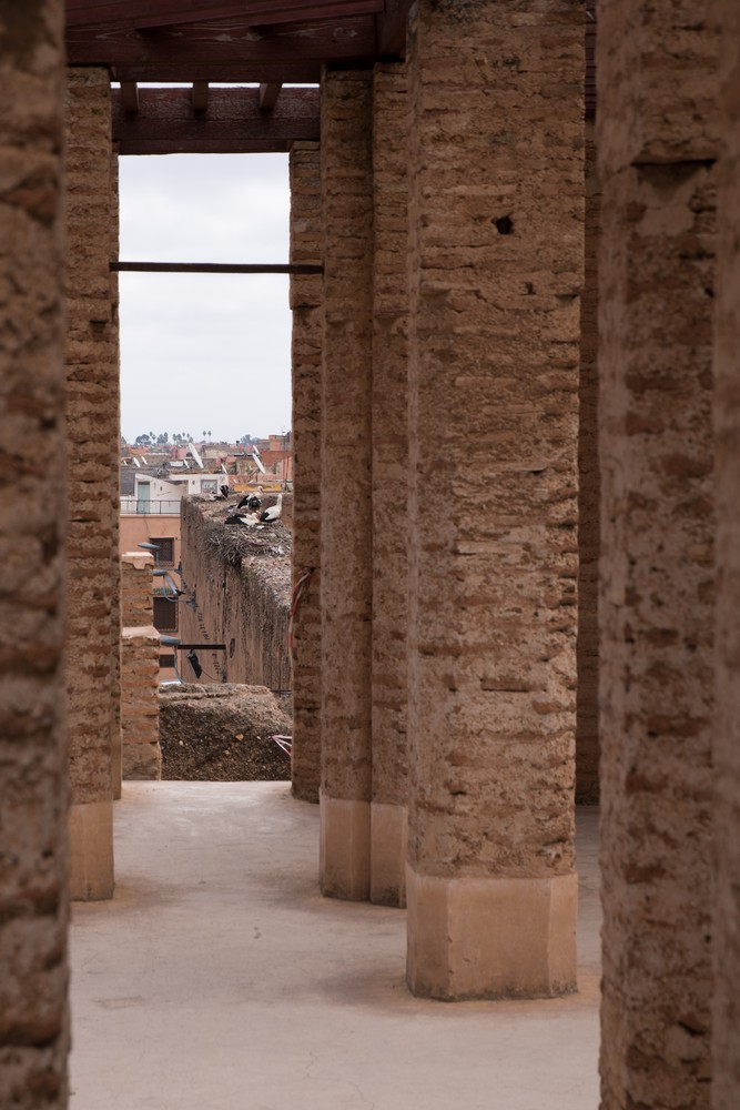 Tout prêt du souk, le palais Badi est si peu mis en valeur par les guides que l’on aurait pu faire l’impasse dessus sans aucun scrupule. Finalement, en passant devant un peu par hasard, on se décide à faire la visite. Le charme de cet ancien palais dont il ne reste que des ruines inspire bien plus que le palais Bahia. Les cigognes planent au dessus de nos têtes et s’installent sur l’épaisse muraille qui borde le lieu. Partout, la fleur d’oranger égaye les chemins de traverse désertés. On flâne des terrasses aux sous-sols en lisant distraitement les panneaux d’information, souvent déconcentrés par le chant d’une cigogne toute proche. Et, contre toute attente, on aime le palais Badi.