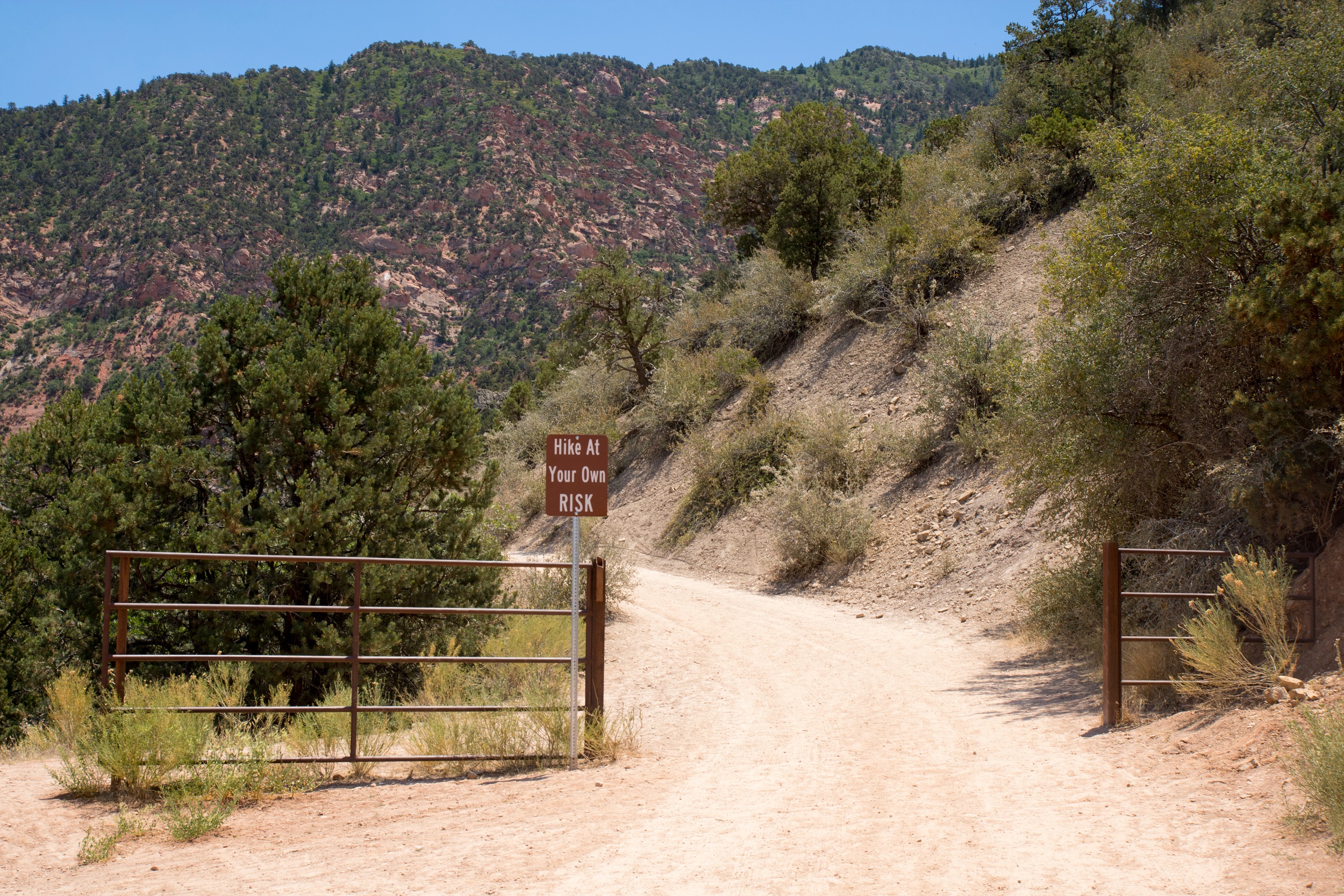 Le parking bondé de Kanarra Creek n’a rien d’encourageant. Une fumée épaisse qui s’élève à l’horizon nous rappelle que le risque d’incendie est bien présent dans le secteur. Partout, on nous rappelle que la randonnée se fait à nos risques et périls et que nous sommes susceptibles de croiser des serpents peu amicaux. Seule la météo clémente semble nous protéger des flash floods.