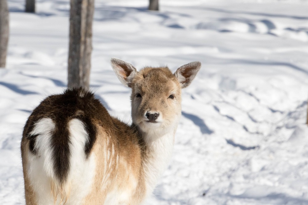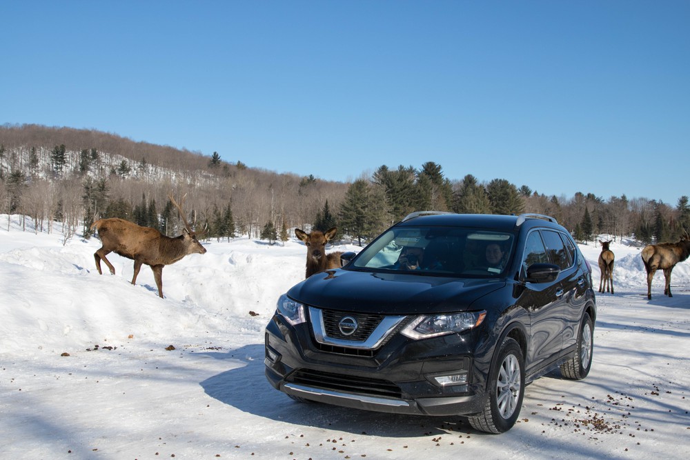 Arrivés tard la veille à Montréal, on débute notre séjour sous un merveilleux soleil en filant sur les routes québécoises. Venus sur ces terres il y a plusieurs années déjà, nous avons cette fois choisi la rigueur de l’hiver et ses paysages enchanteurs. Pour se mettre dans l’ambiance, on commence par un « safari » canadien proposé par le parc Oméga: au programme 12km sur une route enneigée au milieu des animaux emblématiques du pays. Cerfs,wapitis, loups, bisons, renards polaires… ils sont tous là ! Le parc met en avant la cohabitation entre espèces dans de larges enclos et veille à ne présenter que des animaux adaptés au climat québécois.