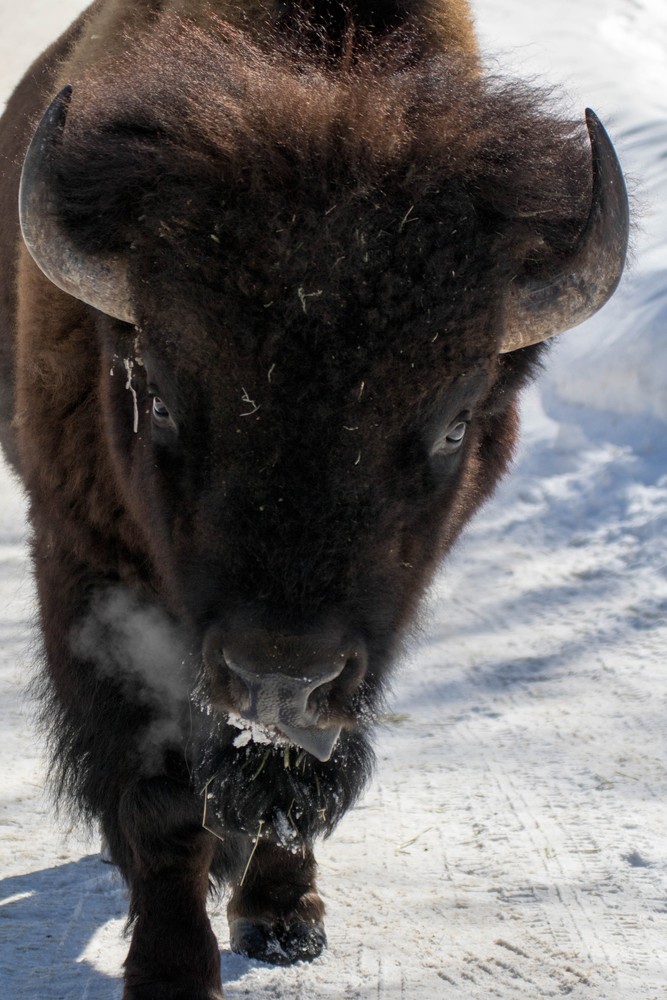 Passés les troupeaux de cervidés avides de carottes, on croise nos premiers bisons aux naseaux qui laissent échapper d’épais nuages de vapeurs. Ils ont beau être tranquilles, on surveille avec attention leur immenses carcasses frôlant nos SUVs sans pour autant paraitre les remarquer. Un peu plus loin, ce sont les renards polaires qui s’agitent dans leur enclos, courant dans la neige avec leurs adorables frimousses.