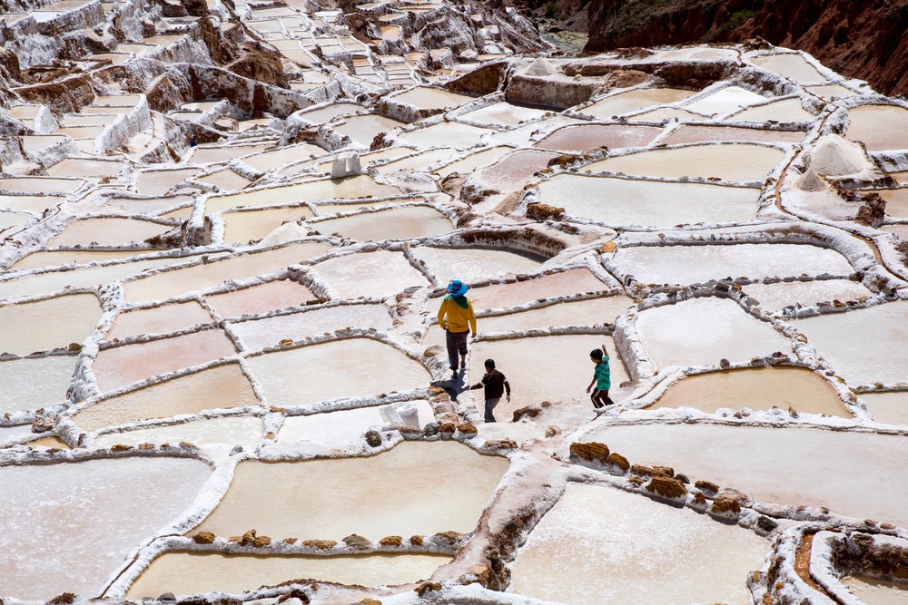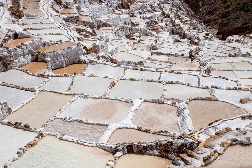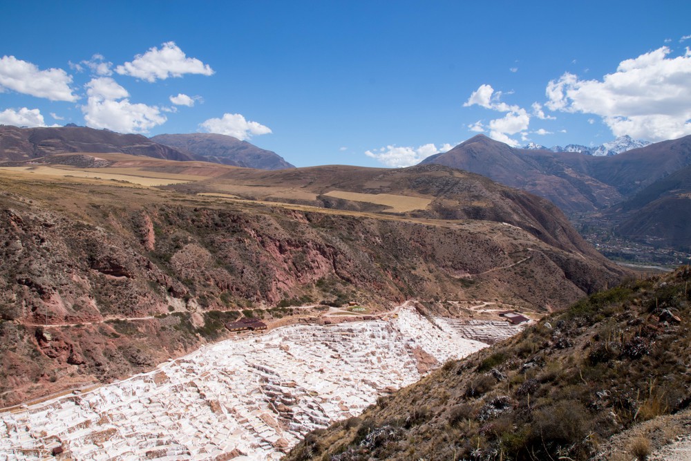 L’étape suivante fait elle aussi figure d’incontournable à nos yeux. Au cœur des montagnes, 3600 bassins exploités depuis des centaines d’années permettent la récupération du sel issu d’une rivière à la source mystérieuse. Plusieurs dizaines de familles exploitent le site de générations en générations dans un décor grandiose, marchant entre les bassins sur d’épaisses couches de sel craquant sous leurs pas ou raclant la surface de l’eau colorée. S’il était possible il y a quelques années encore de se balader entre les bassins, le site n’est désormais accessible que depuis une plateforme en plein soleil, les bassins ayant été trop dégradés par des visiteurs irrespectueux. En sortant, il est possible d’acheter des paquets de sels de toutes les tailles pour des prix très raisonnables.