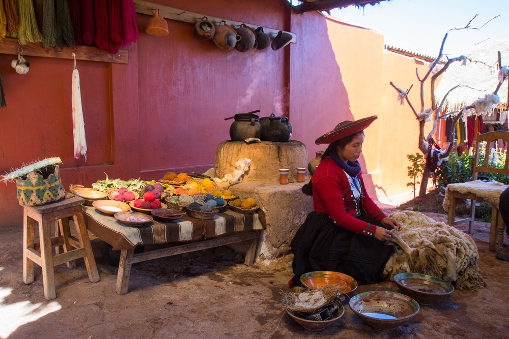 Petit village reconnu pour la qualité de son textile, Chinchero est l’endroit idéal pour assister à des démonstrations du savoir-faire péruvien en matière de textile. Différentes coopératives proposent des visites exposant toutes les étapes de fabrication : de la préparation de la laine à la teinture en passant par le tissage. Si les lieux ont un côté Disneyland, ils sont pourtant intéressants et hauts en couleur. On y passe un bon moment, guidés par une jeune femme tout sourire, et on rencontre une petite famille de cochons d’inde au passage… tout en essayant de ne pas penser à leur avenir incertain. Inconcevable de manger ces adorables frimousses !