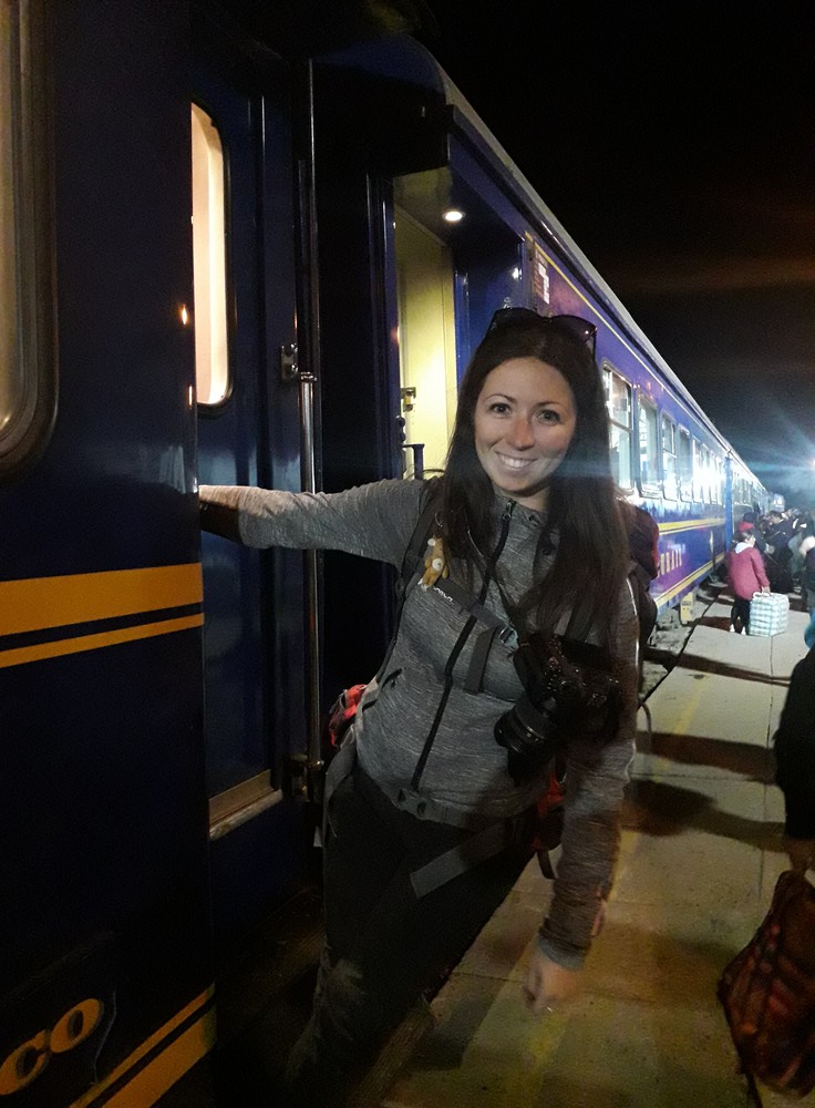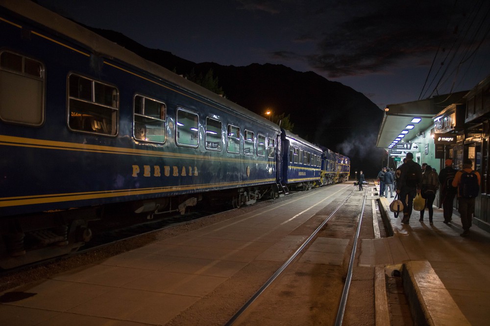 Notre journée se termine à la nuit tombée par un voyage en train mythique… qu’on aurait aimé faire de jour ! C’est LA mauvaise surprise du voyage organisé. Nous n’avons découvert l’heure des billets que quelques jours avant et impossible pour nous de changer l’horaire. On traverse donc l’un des plus beaux itinéraires du monde en train… dans le noir… L’arrivée animée à Aguas Calientes réconforte un peu: demain nous découvrirons une des sept merveilles du monde.