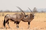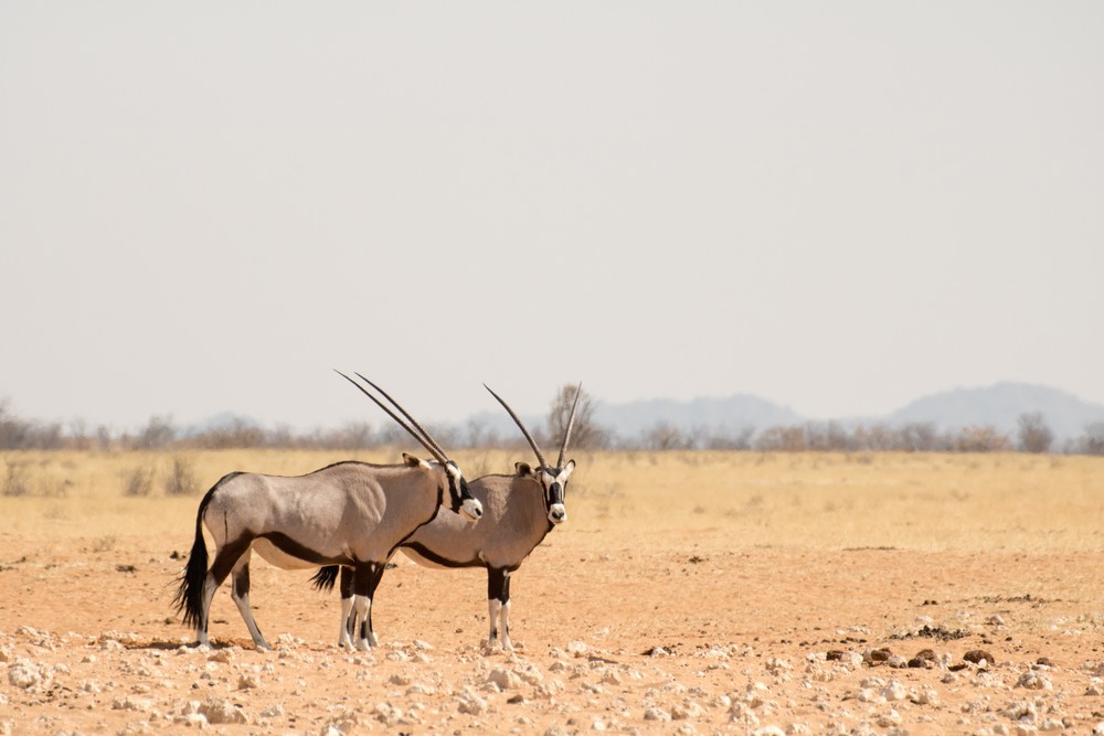 L’oryx gazelle (Oryx gazella), emblème de la Namibie, porte toujours des cornes, qu’il s’agisse d’un mâle ou d’une femelle.
