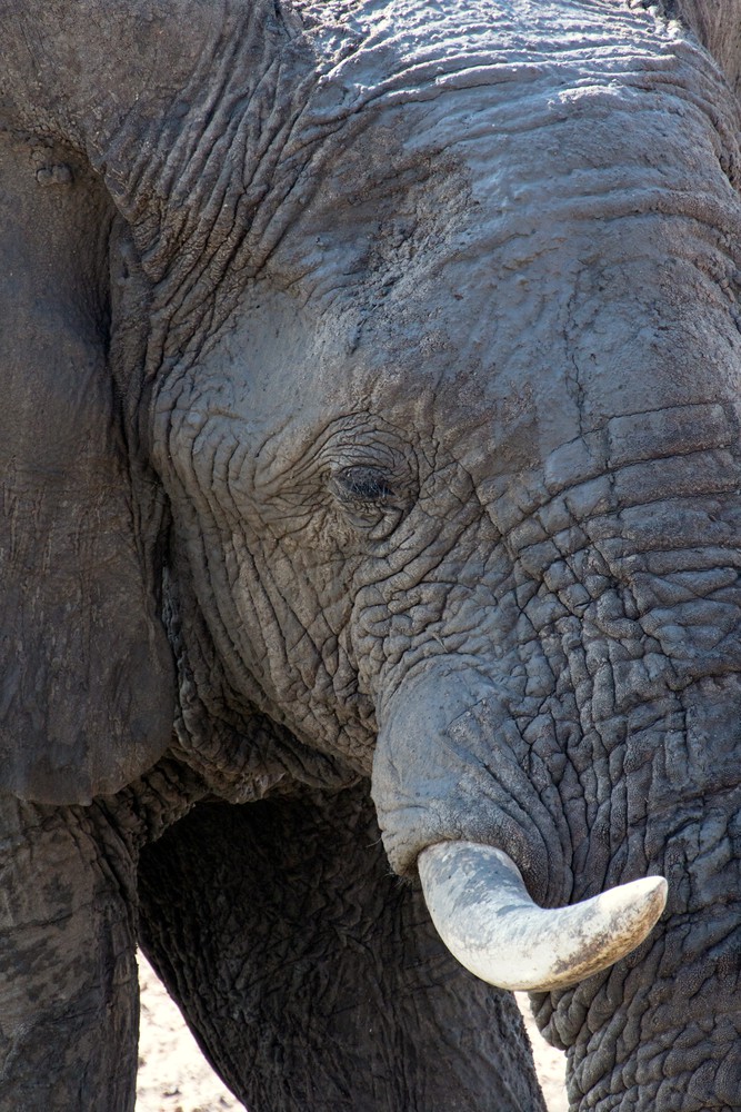 Olifantsrus Camp est connu pour être un ancien abattoir d’éléphants, actif entre 1983 et 1985 à une époque où une surpopulation d’éléphants menaçait l’écosystème du parc. Depuis plusieurs années déjà, il a été reconverti en petit camping conservant les vestiges de ce passé sanglant tout en étant désormais tourné vers l’avenir et la sensibilisation. C’est un endroit isolé de tout avec un plateforme d’observation donnant sur un point d’eau qui permet de s’approcher au plus près des animaux sans les perturber. A l’instant même où l’on s’y installait, un éléphant est apparu au loin. Un grand mâle solitaire.