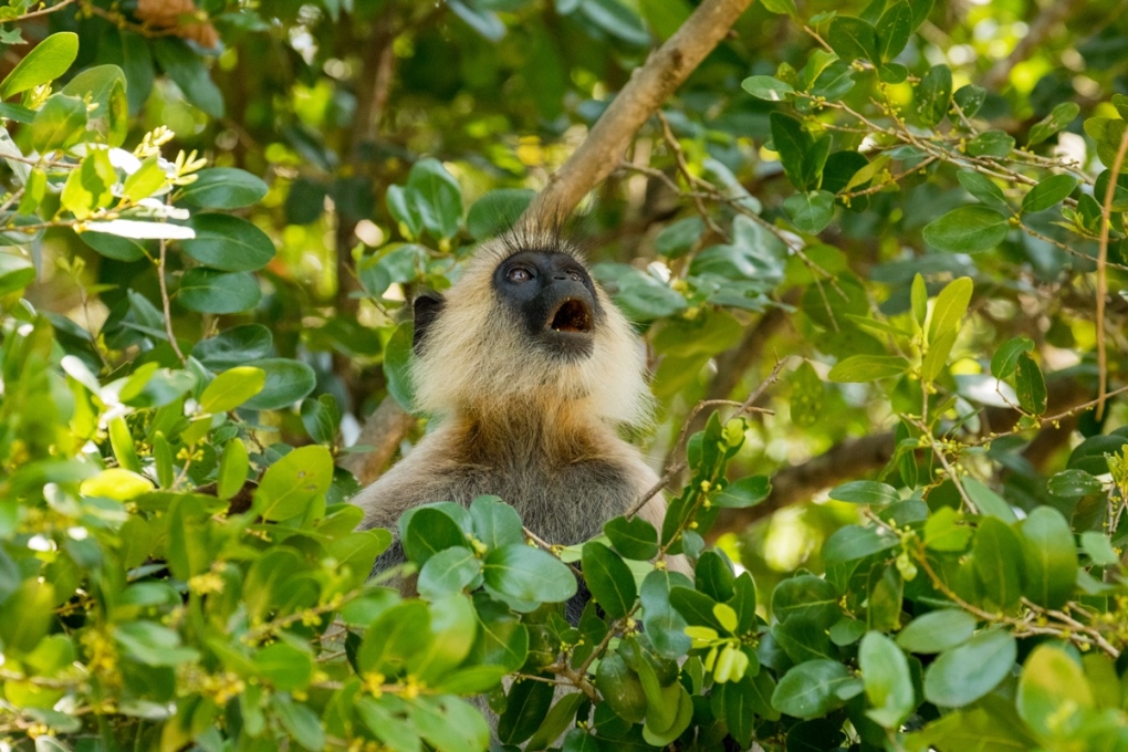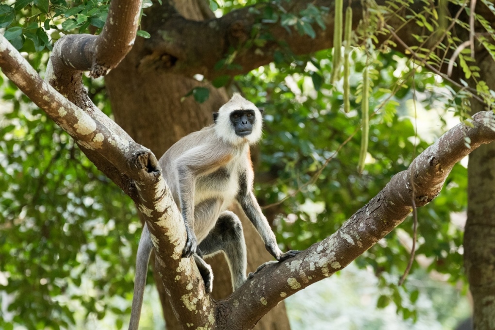 L’entelle ou langur (Semnopithecus entellus) est un singe sacré en Inde. Il vit en bande d’environ 25 individus.