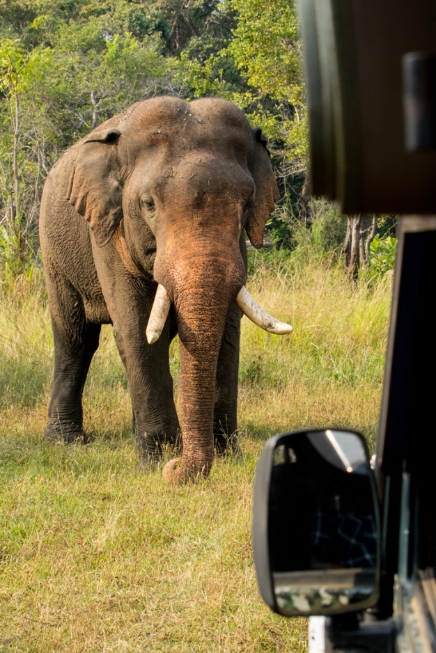 La journée se poursuit dans un environnement bien différent puisque nous partons pour notre premier safari à la recherche des éléphants d’Asie. Bien plus petits que leurs congénères d’Afrique, ils se distinguent aussi par la rareté de leurs défenses et par leur pigmentation rose sur la trompe et les oreilles. Sur les conseils de Chin, on opte pour le Hurulu Eco Park. En arrivant, on est tout de suite inquiétés par le nombre de jeeps garées sur le parking, prêtes à partir ensemble à l’aventure.