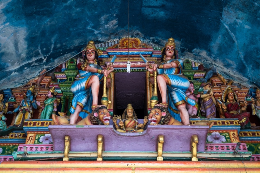 Le temple est submergé de centaines de statues représentant toutes sortes de dieux et d’avatars bariolés dans une incroyable accumulation. Les couleurs chatoyantes de l’extérieur n’ont rien à envier à celles que l’on retrouve une fois la porte franchie. Arrivés à la fin d’une cérémonie, on pénètre dans les lieux dans un formidable vacarme, les yeux grands ouverts sur une multitude de couleurs et de fresques. Dehors, on a même la chance de tomber sur un mariage traditionnel et de découvrir les formidables tenues des invités.