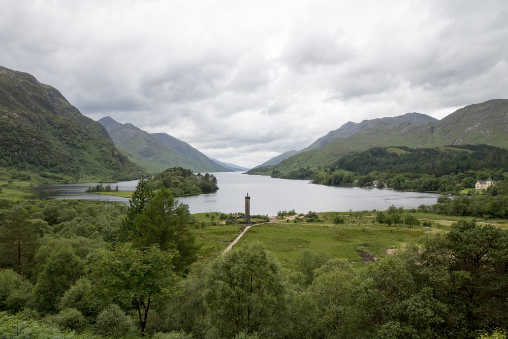 Une fois remis de nos émotions, on prend quand même un instant pour explorer les alentours du viaduc. Le loch est paisible, presque silencieux au regard de la foule amassée de l’autre côté de la route, près du visitor center. Une petite auberge est installée là, quasiment les pieds dans l’eau. Elle nous aurait presque donné envie de nous y installer. Avant de repartir, on emprunte le sentier situé à proximité du centre pour profiter d’une vue panoramique sur la vallée. Il ne suffit que de quelques minutes mais le détour en valait la peine.
