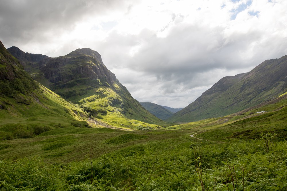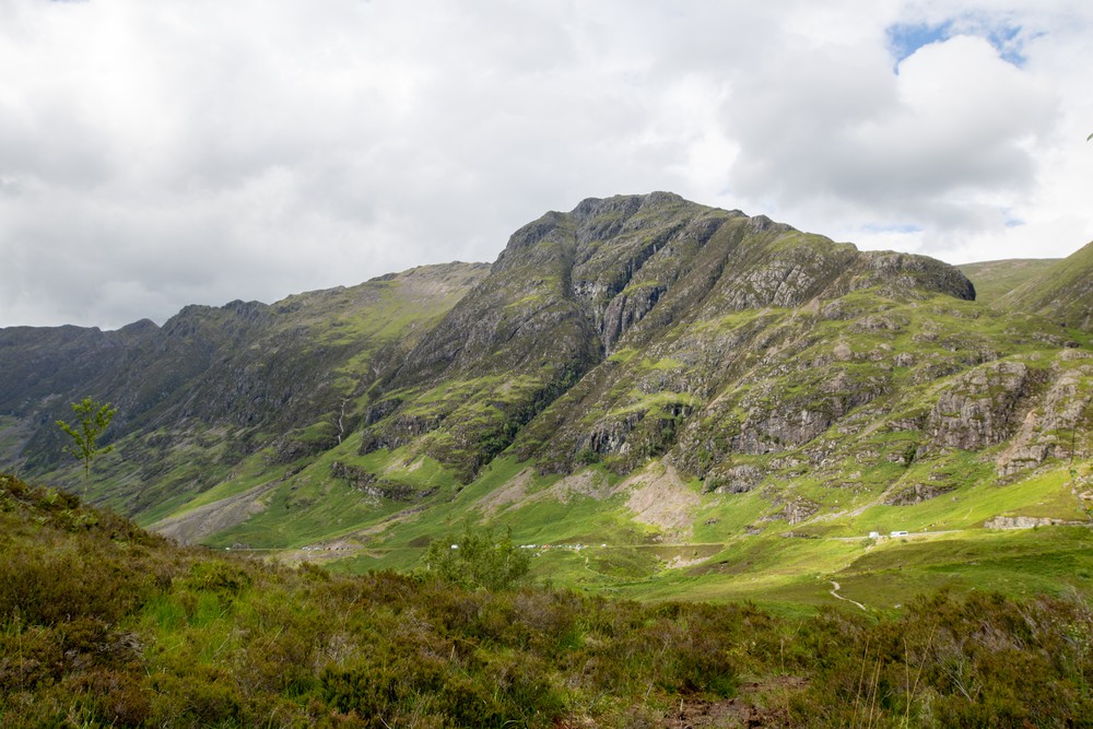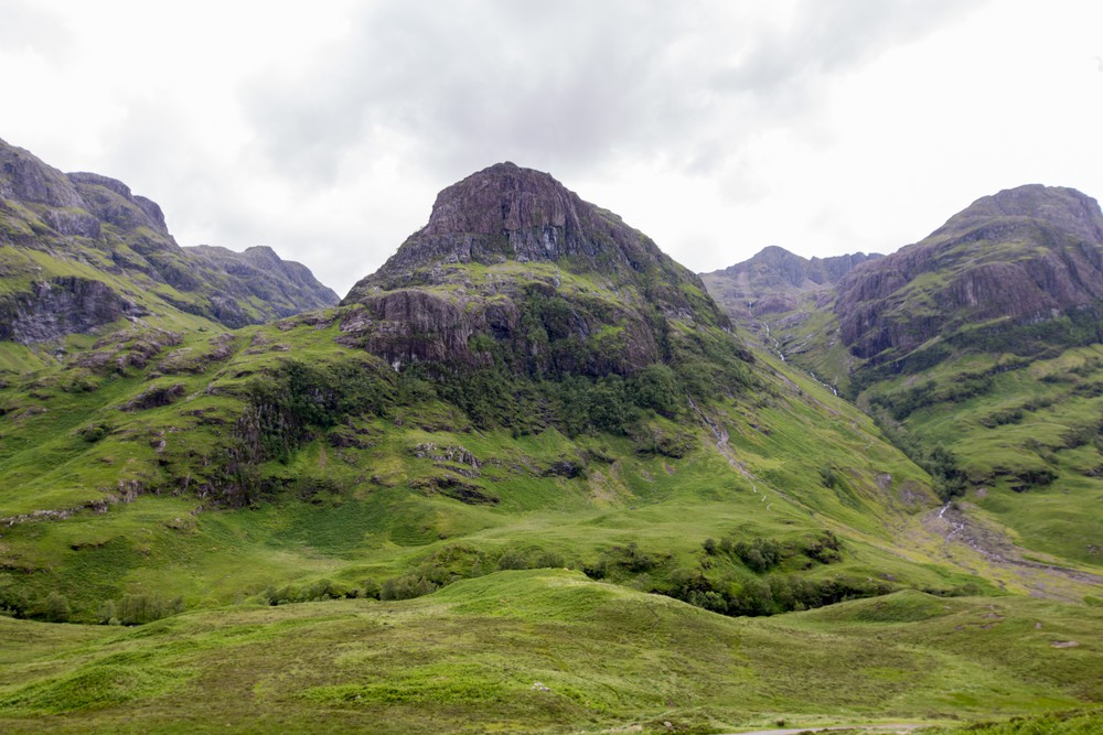 Notre prochaine étape sera la spectaculaire vallée de Glencoe, ses reliefs imposants, son climat rude et changeant…. Tout ce qu’on aime rencontrer en Écosse. On la traverse d’abord en voiture, surveillant avec inquiétude les alternances de nuages sombres et de rayons de lumières dans le ciel qui donnent tout le côté dramatique au décor.