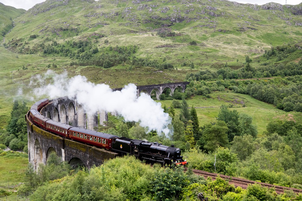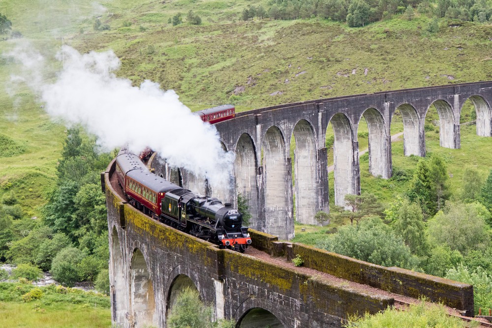 Le Jacobite Steam Train – Poudlard Express pour les amateurs de la saga Harry Potter – passe sur le viaduc tous les matins de début avril à fin octobre. Un trajet supplémentaire est ajouté aux trajets réguliers l’après-midi de début mai à fin septembre. La meilleure option pour voir le train est sans doute de l’attendre lorsqu’il va de Fort William à Mallaig. Le Jacobite apparait sur le pont environ une demi heure après son départ de Fort William.