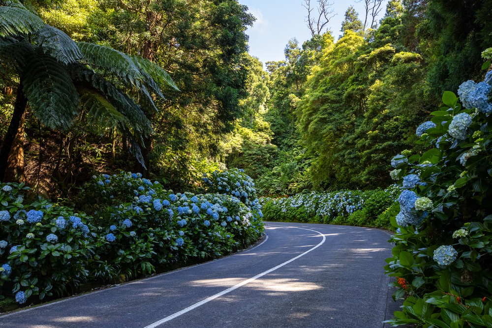 Pour essayer d’avoir une meilleure vue sur les lacs, on grimpe depuis le village vers les hauteurs en empruntant la bien nommée route des hortensias qui contourne les lacs Rasa et De Santiago avant de rejoindre la vue du Roi. On adore cette route tout en virage, bordée par des haies sans fin d’hortensias aux nuances changeantes. Bien qu’on les trouve partout sur l’île, c’est sans doute autour de la caldeira qu’on les trouve dans les plus grandes concentrations.