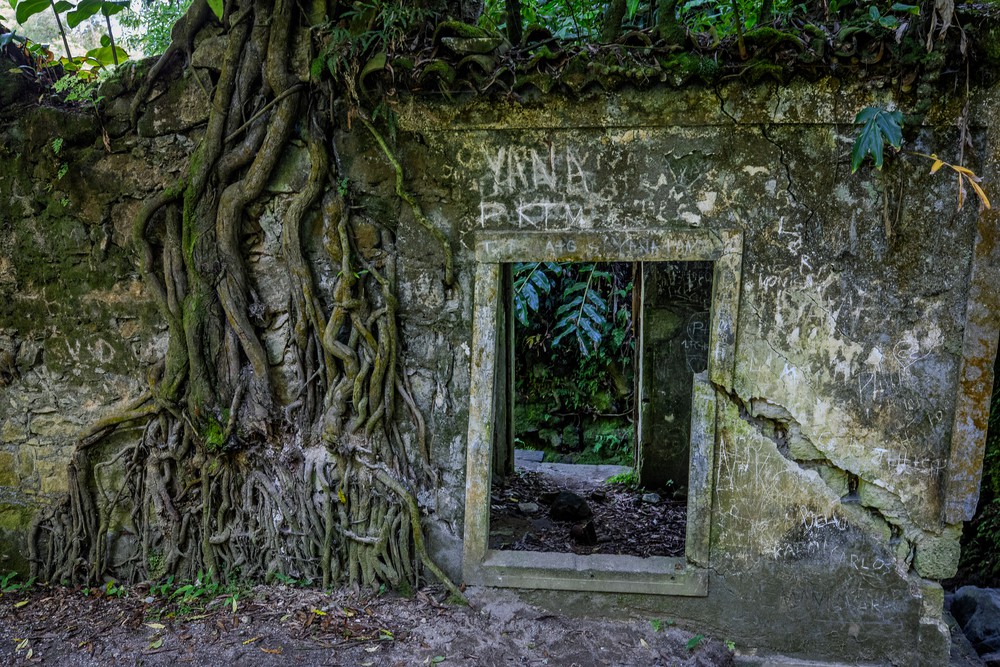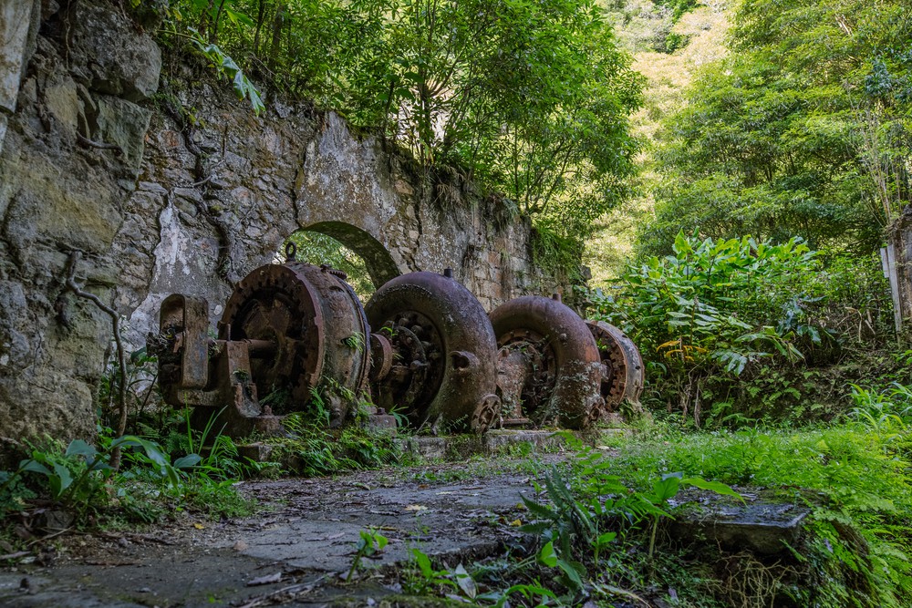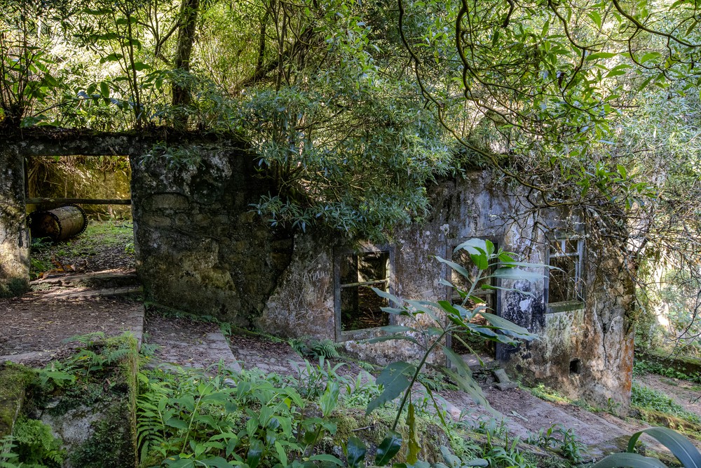 Après une courte hésitation sur l’étape suivante, on s’embarque finalement sur un sentier de randonnée original puisqu’il nous emmène à la découverte des ruines de vieilles fabriques hydroélectriques, dont la plus ancienne date de 1900. C’est ainsi qu’on dévale, avec PetitCœur dans le dos, une vallée regorgeant de végétation avant de découvrir les anciennes bâtisses, déjà envahies de racines et de mousses. Tout est resté là, figé depuis plus de 30 ans : les murs, les toits, les pompes et toutes les canalisations… Curieusement, il y a quelque chose de presque poétique à observer ces vestiges d’un passé industriel devenir un élément d’abri pour les plantes et les oiseaux.