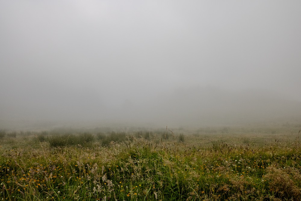 Cependant, l’option navette nous attirant assez peu, nous profitons de l’heure tardive pour tenter notre chance seuls. Sur la route, plein d’enthousiasme, on savoure le soleil et les jolies lumières dorées qui réchauffent le paysage… pour arriver au premier belvédère dans un brouillard terrible ! On s’acharne sur quelques kilomètres avant de renoncer. Le lac ne sera pas pour nous ce soir.