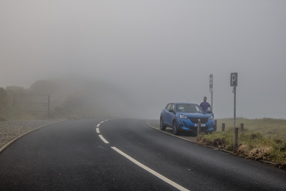 Réveillés tôt le lendemain, on retente notre chance avant l’arrivée des navettes et le même scenario semble se reproduire. Un brouillard dense accompagne notre trajet jusqu’au dernier point de vue. On descend tout de même de la voiture, cherchant à observer les contours du lac à travers les nuages. Alors qu’on renonçait, un pâle rayon de soleil a soudain surgi des nuages. Et, comme un miracle, l’espace de 3 min, le jour s’est levé sur le Lagoa do Fogo.