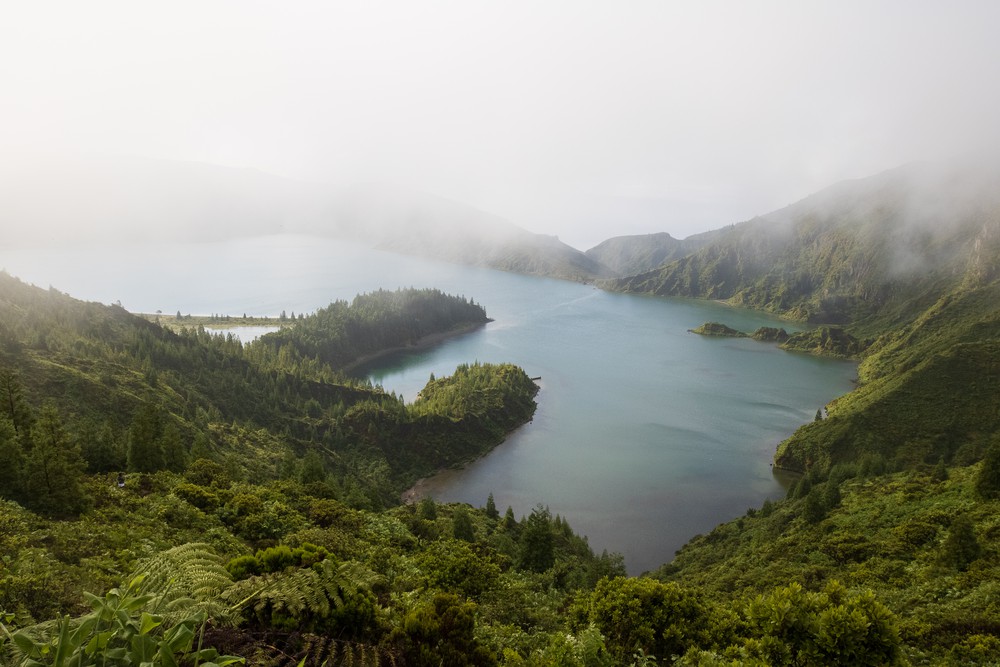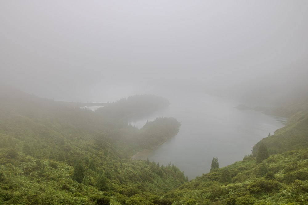 Avec ces deux péninsules qui s’avancent dans les eaux claires et sa mince ligne de sable blanc, le  Lagoa do Fogo est plus que reconnaissable. Et pourtant, on lui trouve un air de famille avec ceux des Sete Citades, avec leurs hauts sommets montagneux recouverts de végétation qui s’effondrent dans les eaux bleues. Quelques marches, souvent inaccessibles en raison des intempéries, permettent de rejoindre la plage et d’observer les oiseaux qui y font leurs nids. Nous n’avons pas le temps d’y penser : le brouillard retombe déjà et le lac disparait dans la brume…
