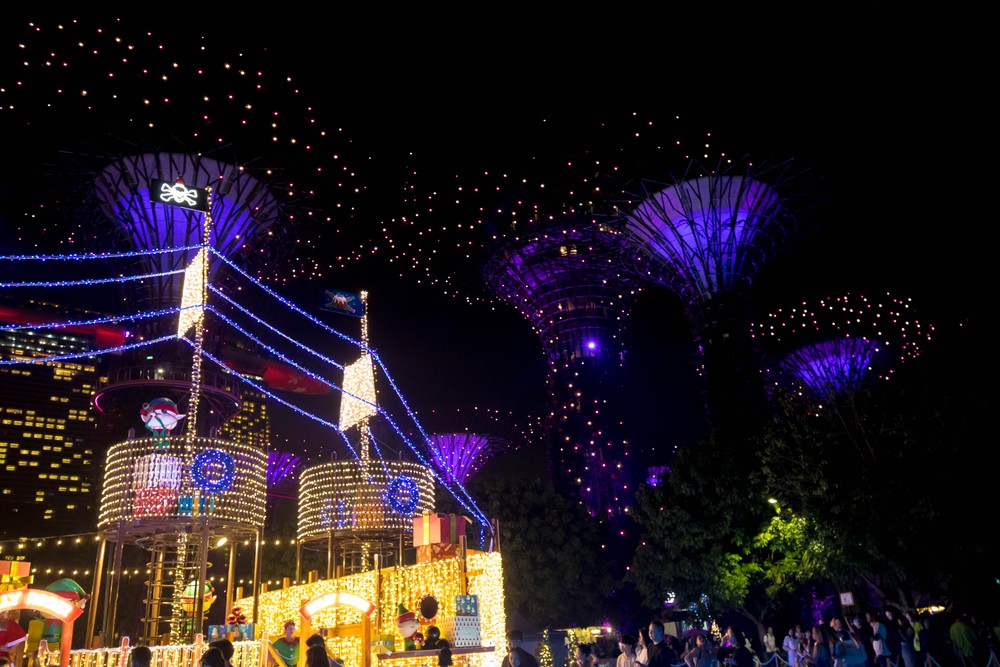 Il est désormais temps de quitter la surprenante Singapour pour passer les fêtes en famille. Avant de partir, on prend tout de même le temps de visiter l’aéroport et son improbable fontaine tombant du toit qui nous offre, comme pour dire au revoir, un dernier spectacle de lumières.