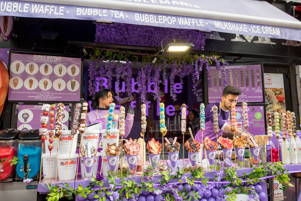 La visite commence dès la sortie du métro où des stands de bubble waffles croulant sous les sucreries nous accueillent. Juste derrière, l’Inverness market propose des stands de bric-à-brac et de vêtements de toutes sortes, qu’on ne croise généralement pas partout. Leur robes gothiques me font de l’œil pendant que d’autres regardent avec envie les vestes en jean customisées. On y trouve aussi des articles plus communs à des tarifs généralement intéressants… et négociables 😉
