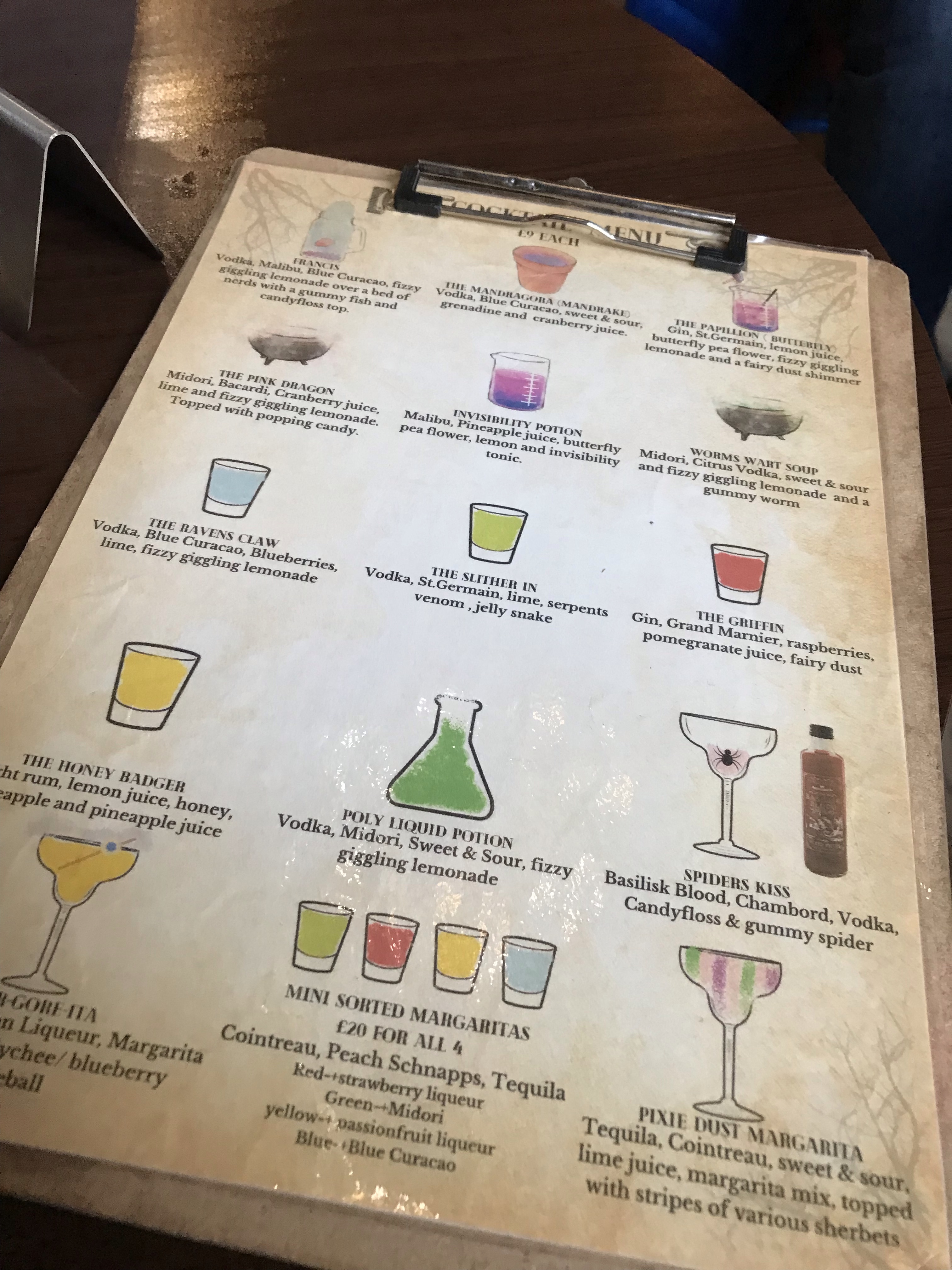 Nous avons adoré ce bar sur le thème de Harry Potter. Les cocktails sont originaux, le décor fabuleux et le personnel très attentif. des cours de mixologie – ambiance cours de potion – sont dispensés au fond de la salle. Une très belle façon de finir notre séjour.