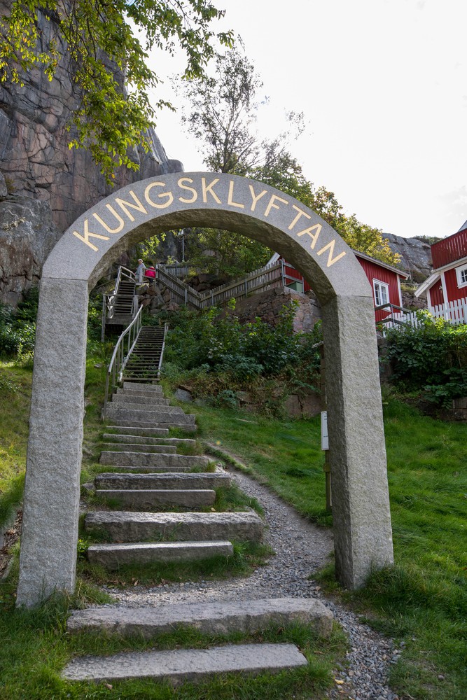 On suit la route en observant les maisons colorées avant d’arriver rapidement sur la place principale. Les portes de la nature s’ouvrent en plein centre de la petite ville avec le Kungsklyftan, une volée de quelques 225 marches traversée par une faille dans la roche et qui s’élève jusqu’au sommet de la colline. Au sommet, la vue sur l’archipel vaut largement le détour et la petite grimpette.