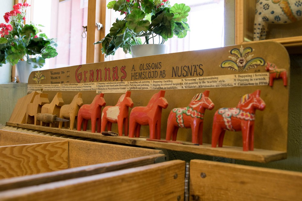 Notre premier arrêt sera l’usine de fabrique des chevaux de bois de Dalécarlie.  Figure emblématique de la Suède mais plus encore de cette région, tant par leur matière que par leur couleur, les petits chevaux de bois rouges étaient à l’origine, sculptées par les bucherons pour leurs enfants. En bons touristes, on s’arrête donc à l’usine pour en savoir plus. Si les locaux sentent bons le bois et si les chevaux sont terriblement mignons, on regrette un peu que la visite ne soit pas plus explicative et vivante. Nos quelques achats souvenirs gentiment suggérés à l’avance rangés dans les sacs (coucou maman ^^), on reprend la route en poursuivant le tour du lac.