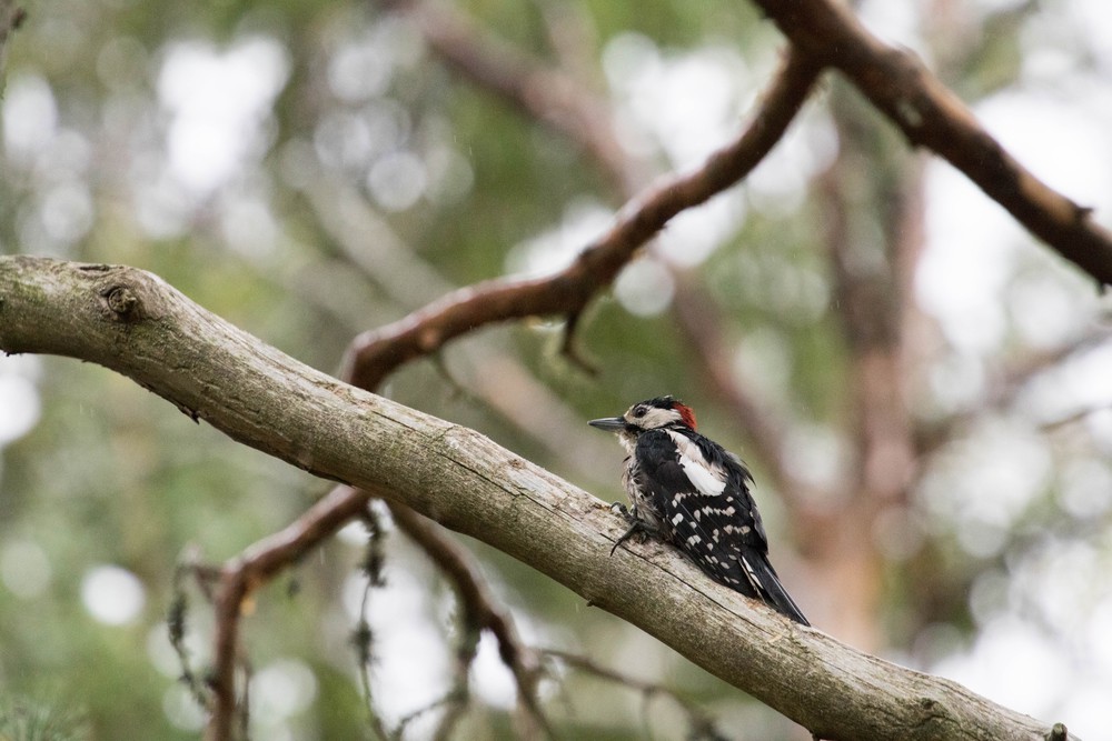 L’observation commence dès que notre guide s’efface. Les premiers oiseaux apparaissent, timides, puis le festival des écureuils commence. Ils sont trois à réveiller la forêt, trois à mettre un bazar considérable dans le monde des sages petits oiseaux. Ils sont là puis disparaissent, grimpent sur un tronc, sautent dans les arbres, resurgissent de nul part et effraient avec malice les geais des chênes. On tombe amoureux de ces petits êtres infatigables qu’on observe pendant des heures. Quelques pics apparaissent, le bruit de leur bec résonnant dans les bois calmes. Puis, finalement, les écureuils disparaissent. On cherche, on espère, on se tait dans la cabane… un cri aigu se fait entendre et on voit finalement apparaitre nos premiers petits rapaces. On observe à nouveau et les écureuils qui reviennent avec leur interminable chahut, sous une pluie fine cette fois. On en profite pour se demander si notre chaton en est vraiment un et si on n’aurait pas finalement hérité d’une espèce rare de rongeur tant les attitudes semblent similaires.
