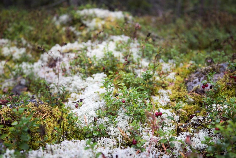 Après un rapide apprentissage de la langue des signes option recherche d’élans, on file en silence dans les bois pour une première tentative sous la lumière du jour. On recherche les traces dans les herbes hautes, on tend l’oreille, on observe avec attention tout en remontant la piste sagement, sans un bruit. Déjà le soleil menace de se coucher et baigne d’une lumière douce les milliers de myrtilles et d’airelles rougeoyantes qui couvrent l’épaisse mousse sur le sol. Après une heure, il est temps de renoncer à notre balade: les élans sont déjà partis. …