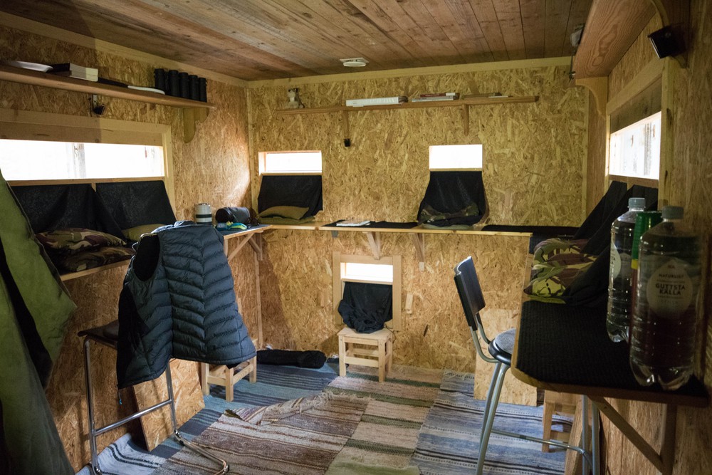 C’est ici que nous passerons les prochaines vingt-quatre heures. Une planque aménagée spécialement pour surveiller les bois et revenir la carte mémoire débordante de clichés. Étonnamment, l’endroit est plutôt cosy : tapis au sol, chaises confortables, lits douillets, stock considérable de couvertures et multiples fenêtres donnant sur l’extérieur. Pierrick nous laisse là et l’expérience commence…
