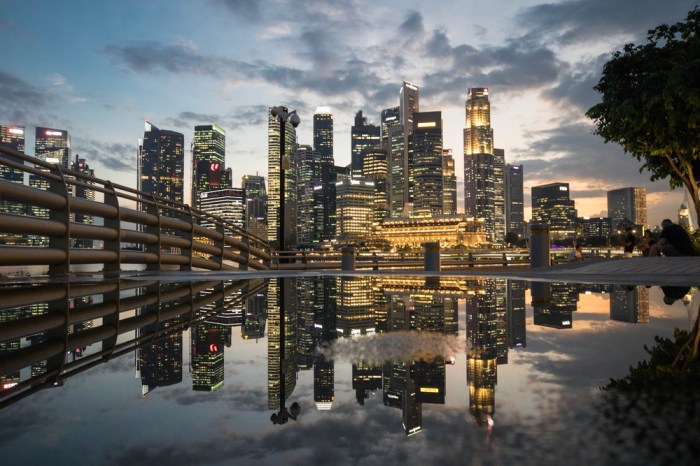 Les dizaines de buildings aux façades vitrées qui se découpent sur le ciel nuageux nous rappellent un peu New York. Sur les abords des Shoppes, l’architecture réserve quelques surprises : une géode toute d’acier et de verre abrite un Apple Store, l’ArtScience Museum flotte tel un lotus de pierre sur une eau grise, le bâtiment Vuitton prend des airs d’iceberg et l’Helix bridge est particulièrement gracieux aux premières lueurs du soir.