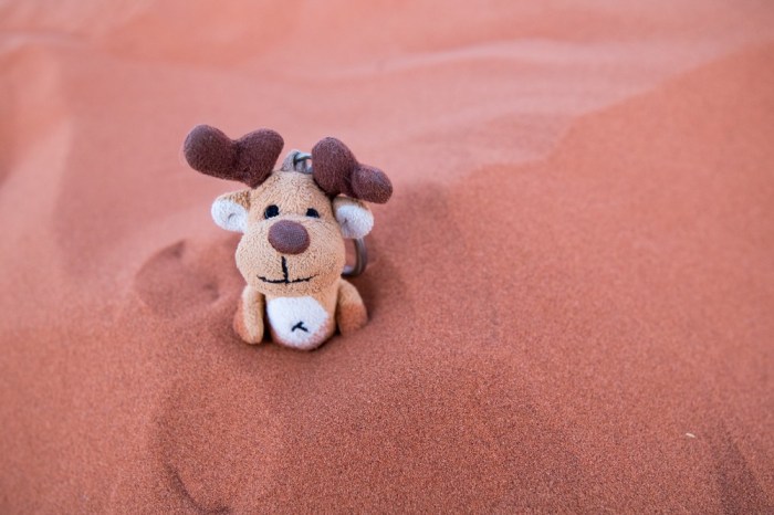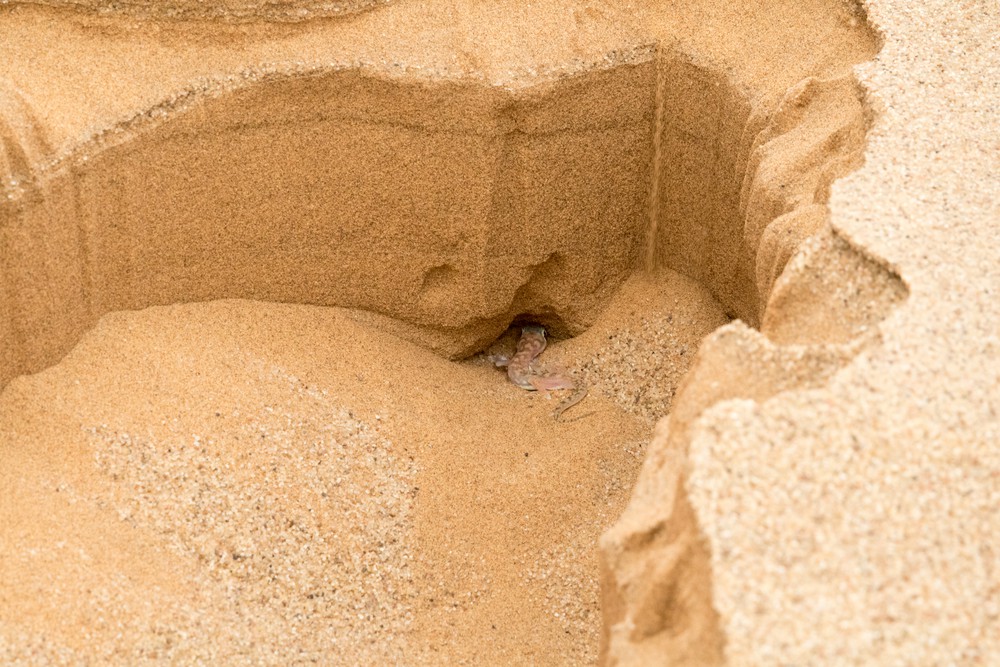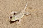 En parlant de petite bête, Jens arrête la voiture en urgence et nous fait descendre de son bolide. Il vient de repérer, sur le bord de la route, un petit lézard d’une dizaine de centimètres à peine : le thorny devil. Cette petite bête surprenante me plait tout de suite avec ses airs préhistoriques. Il est très important de ne pas les toucher car ces petits diables ne sont pas capables de boire par la bouche : ils aspirent l’eau, par la peau, dans de petites mares. Toute trace de crème solaire ou de savon les mettrait donc en danger, d’autant plus que leur instinct les pousse à rester immobile en cas d’alerte et à ne pas s’enfuir.
