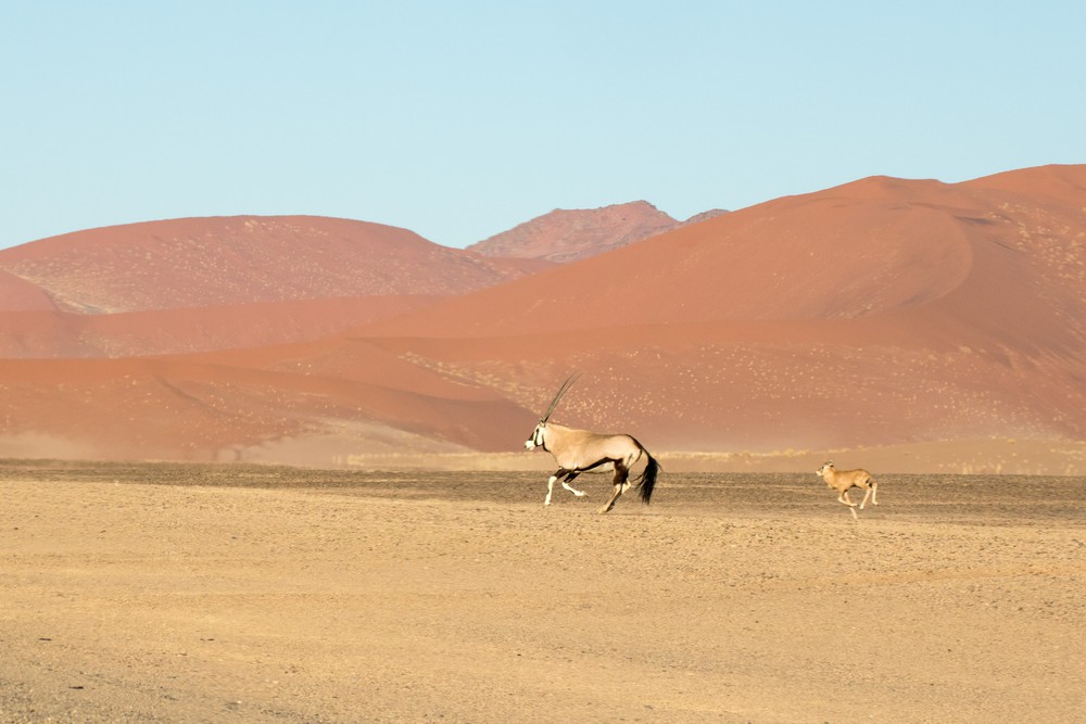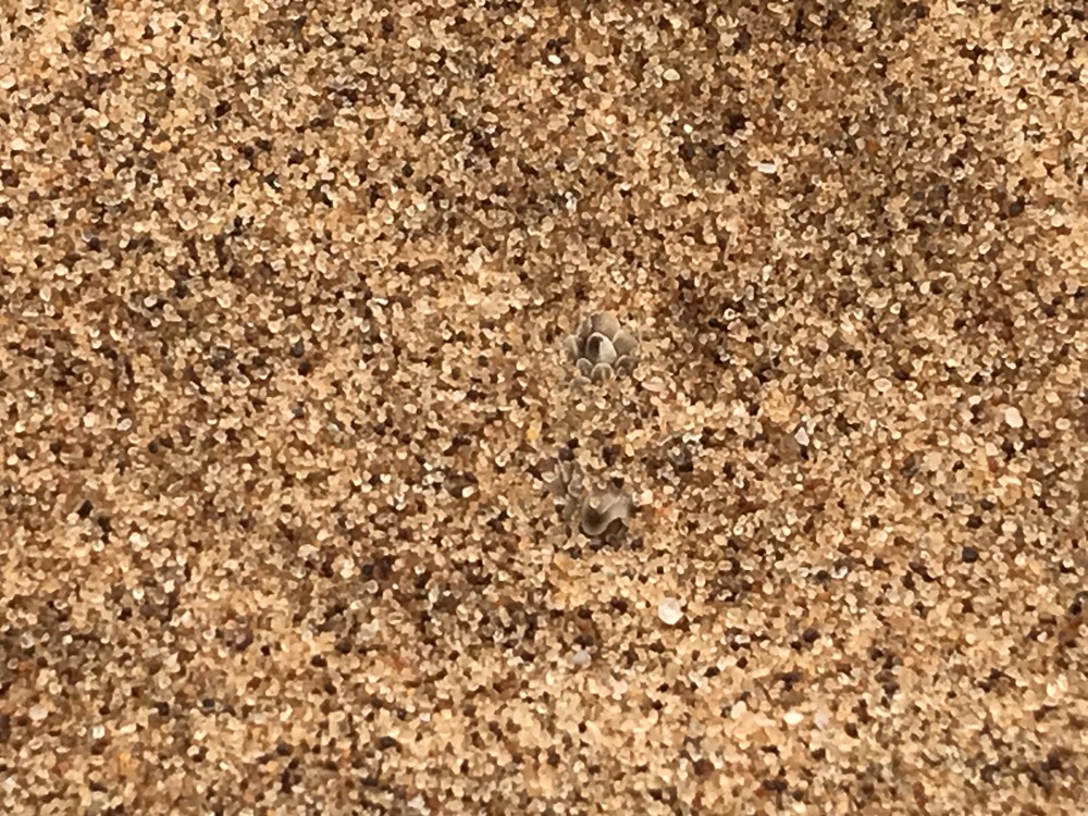 A notre arrivée au Cap Peron, on est tout de suite impressionnés par les couleurs de notre environnement. Des dunes oranges ponctuées de végétation d’un vert aux reflets bleutés ou argentés se fondent dans des plages de sable blanc. La mer arbore de jolies nuances de bleu, non pas en raison de différences de profondeur mais plutôt car de larges prairies d’herbe marine couvrent une partie des fonds marins. Depuis le sommet des dunes, on observe d’imposants groupes de cormorans ainsi que quelques dauphins venus chasser de petits bancs de poissons tout près de la plage. Les lieux paraissent magiques, presque irréels.