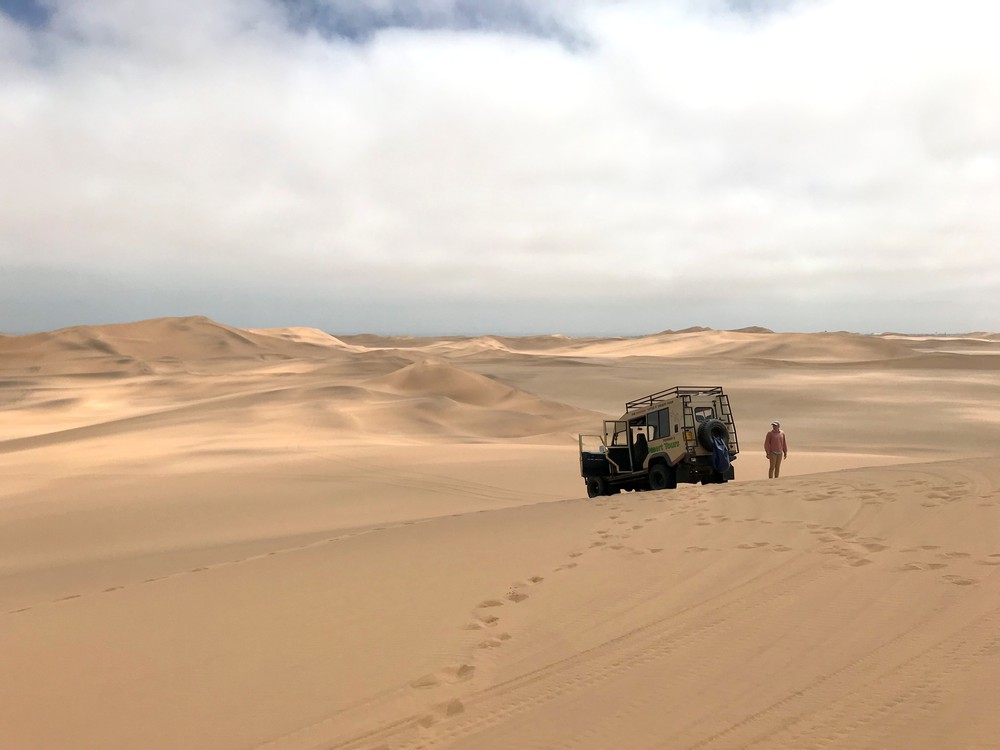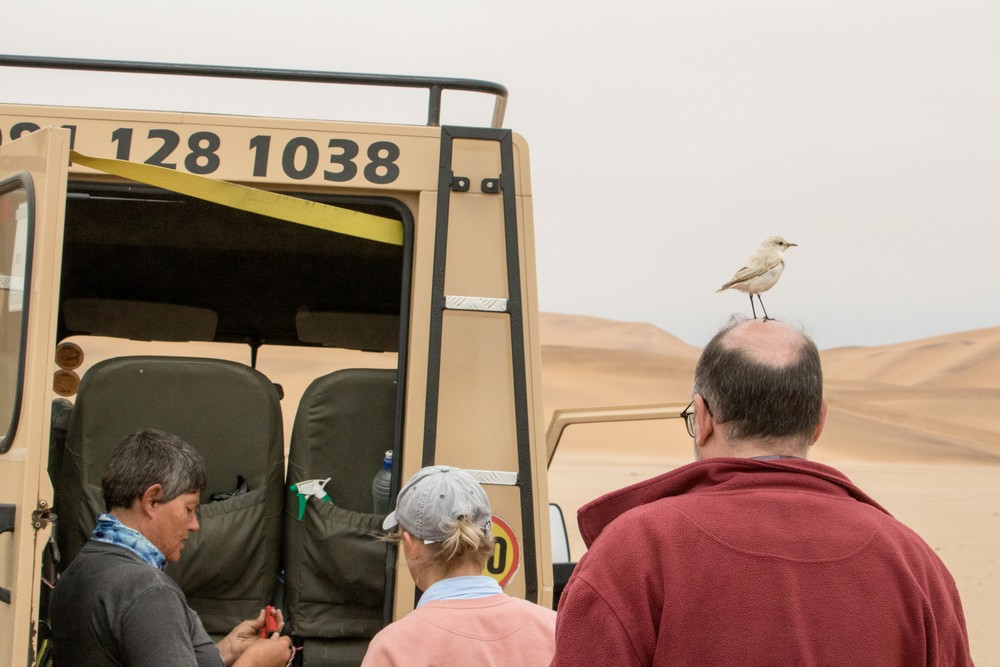 En remontant la plage à pied, on change de perspective. Les nuances de couleurs du sable apparaissent plus clairement, au contraire de la faune marine qui disparait sous cet angle, se fondant dans les vagues. Un air frais balaie le décor, rendant la chaleur très supportable voire presque agréable. On profite un moment des lieux, scrutant la mer à la recherche d’autres animaux. Avant de partir Jens, notre guide, nous propose un morning tea avec petits gâteaux, tasses de thé aux couleurs de la compagnie et nappe à carreaux !