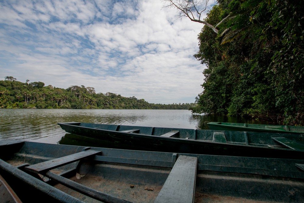 Après quelques formalités, on rejoint les rives du fleuve pour le début d’une aventure qui nous marquera à jamais. Au bout du ponton, de longs bateaux à fond plat nous attendent pour nous transporter au cœur de la forêt amazonienne. A bord, on nous sert un repas emballé dans des feuilles de bananier que l’on déguste les yeux rivés sur les berges à la recherche de caïmans, capibaras et autres bestioles locales. Quand on atteint le lodge, le soleil se couche déjà sur l’eau.