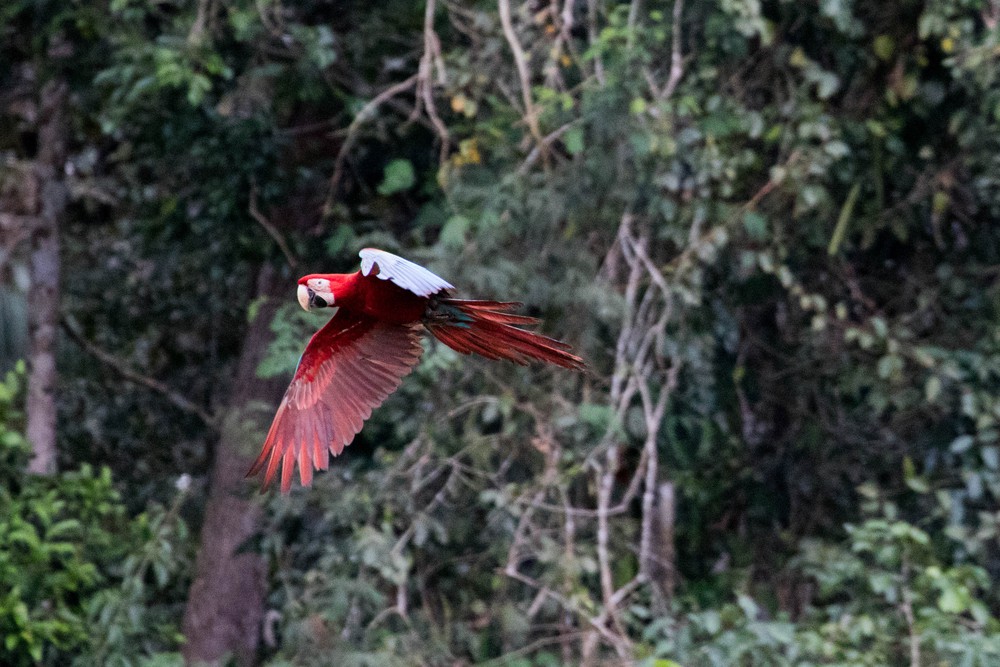 Ce matin-là, de timides groupes étaient postés dans les arbres, les premiers oiseaux s’aventuraient tout juste dans la falaise quand soudain, un brouhaha immense s’est fait entendre. Tous les oiseaux se sont enfuis d’un battement d’aile dans une parfaite synchronisation. Sans prévenir, ils ont volé dans toutes les directions dans un vacarme incroyable. On ne saura jamais ce qui les a effrayés, notre petit groupe étant à distance respectable et parfaitement silencieux. Léo penchait, lui, pour un jaguar ou un serpent.