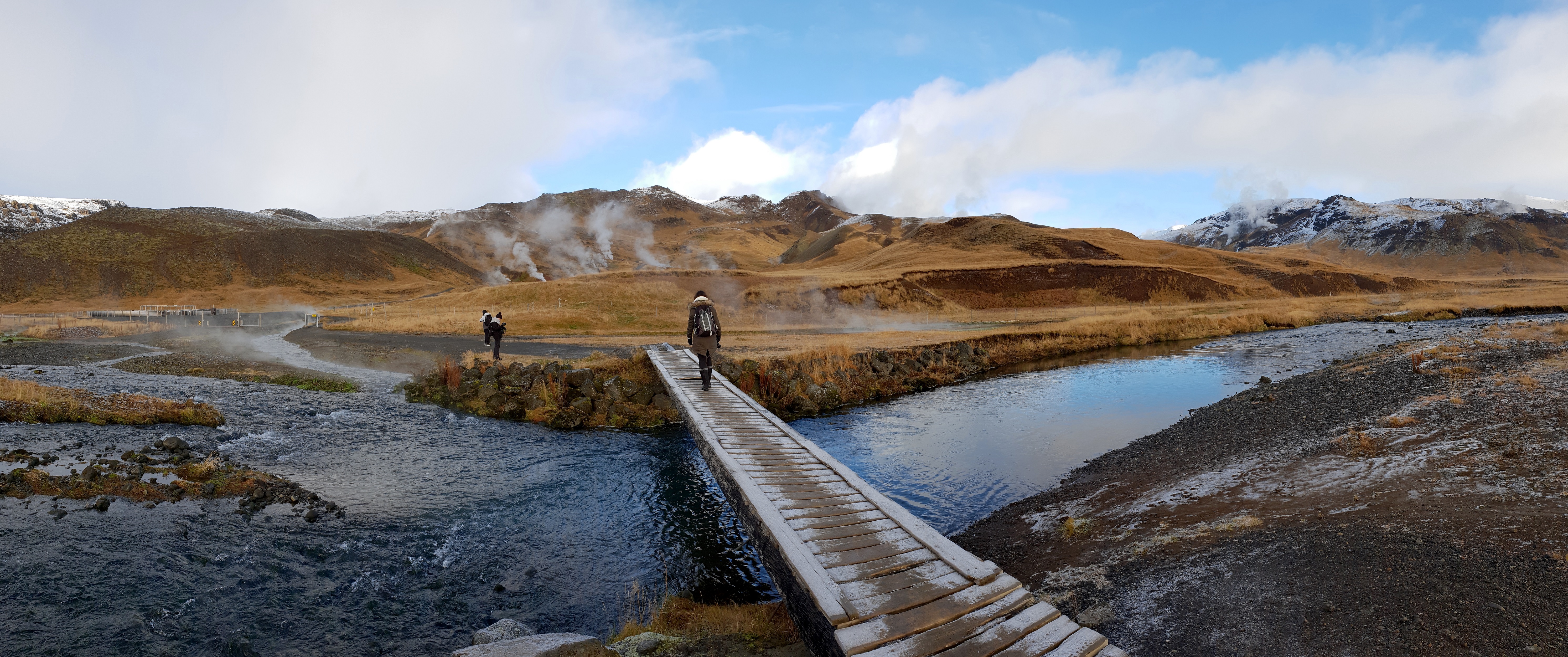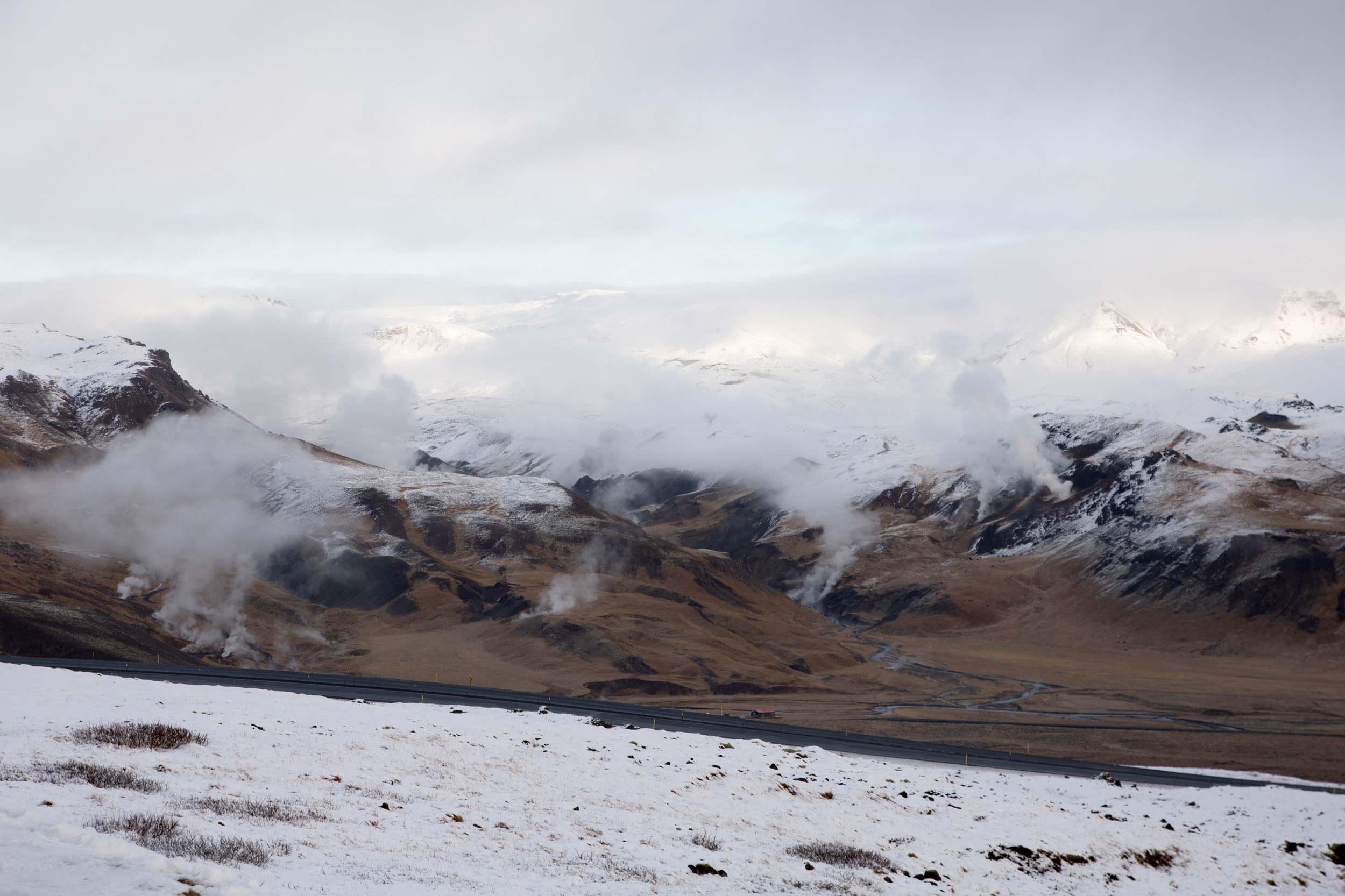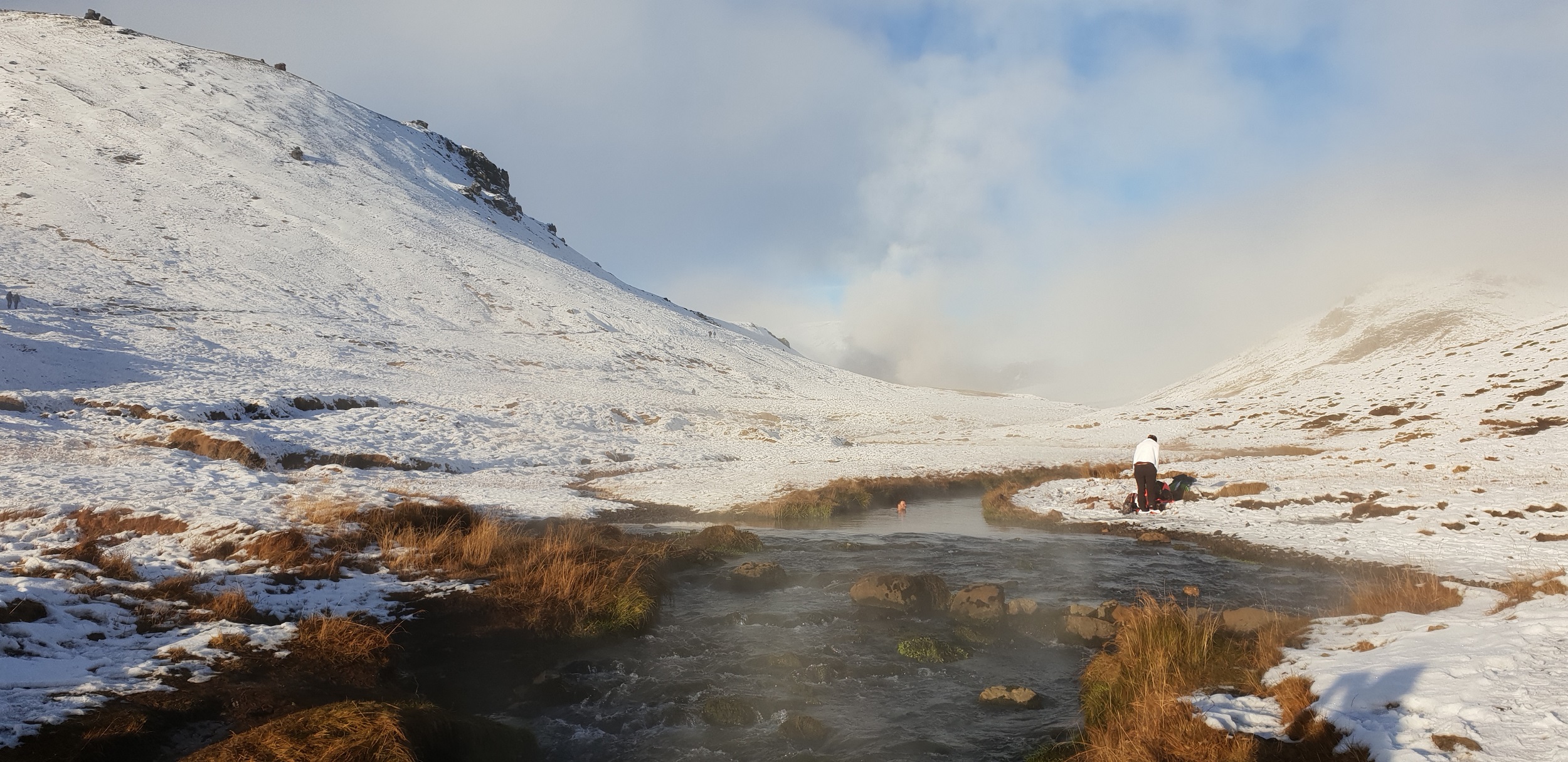 La maison propose également l’accès gratuit à ses sources chaudes. Deux bassins extérieurs sont accessibles ainsi qu’une sorte de piscine lovée au milieu d’une serre désordonnée. Un drôle de nuage de vapeur flotte dans la serre où les arbres perdent leurs feuilles. On est à nouveau seuls, à peine dérangés par le chat de la maison en pleine ronde quotidienne. Si le bain d’eau chaude est agréable, en sortir est un autre sport. Les vêtements laissés dans la serre sont humides et froids, le sol glacé. On file à la voiture pour se réchauffer et reprendre la route dans la pénombre jusqu’à Sudavik.