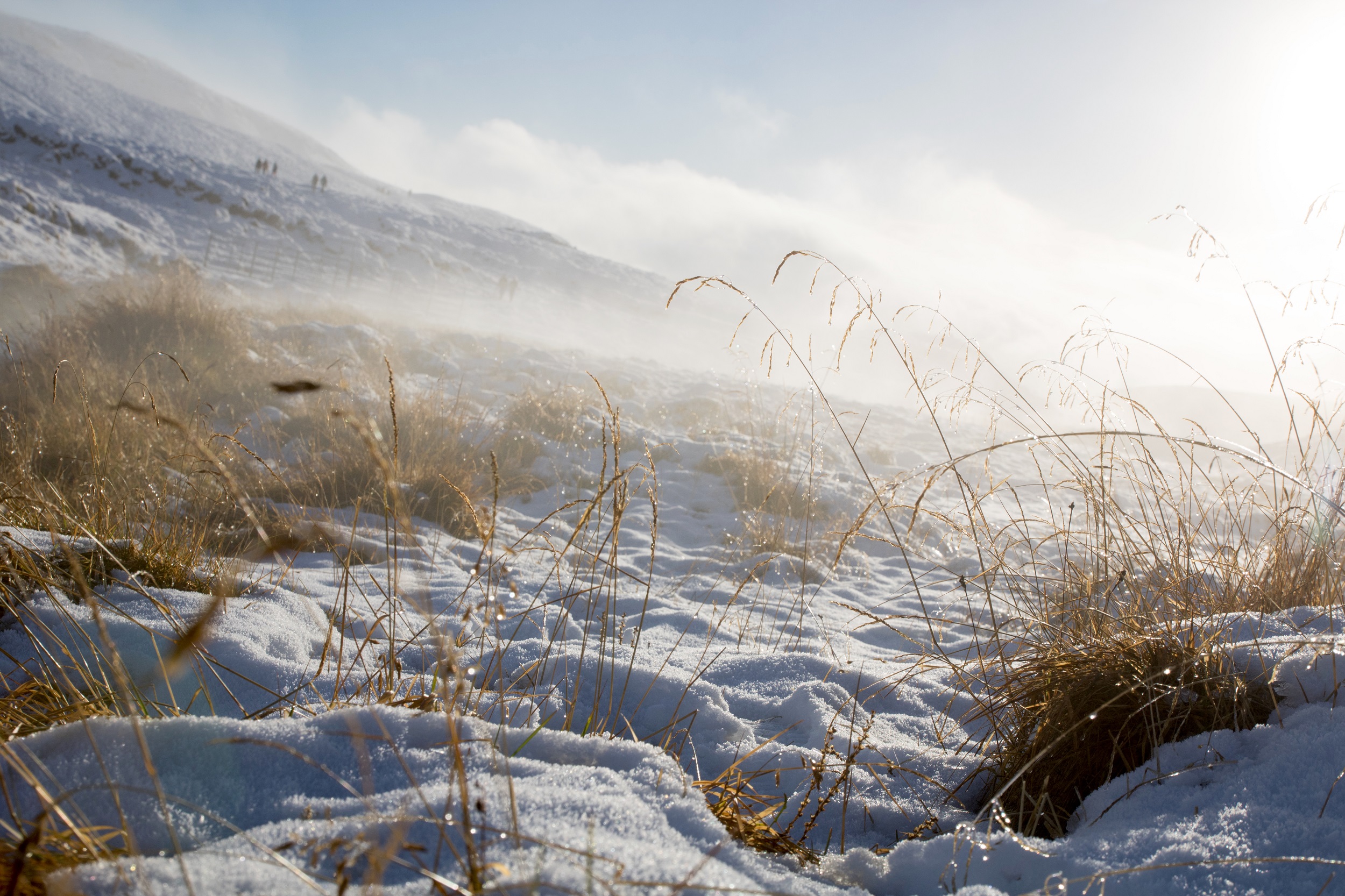 On poursuit la balade dans un décor majestueux aux couleurs chaudes parfois dissimulées sous une fine couche de neige et de glace. Partout, le sol est recouvert de bosquets de myrtilles et de baies. D’épais buissons donnent l’impression de marcher sur de la moquette, on rebondit presque en dévalant les pentes. De l’autre côté du fjord, la réserve de Hornstrandir parait nettement moins hospitalière, l’accès y est d’ailleurs quasiment fermé en cette période. On marche des heures, à l’affut, dans ce paysage magnifique. Par chance, le soleil ne nous lâche pas de la journée et on aurait presque chaud malgré les températures qui frisent le zéro. Malgré tout le savoir de Rodolphe, malgré tous les indices repérés (les renards laissent plein d’oursins sur leur passage !) aucun renard ne se montre. Résignés, on prend le chemin du retour en baissant la garde.