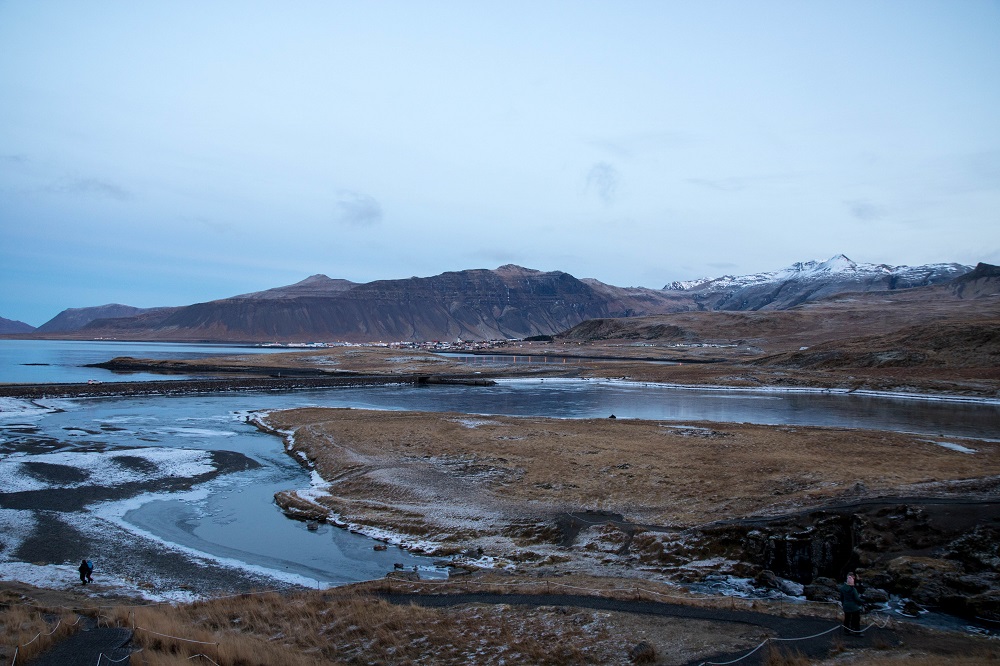La route est un peu longue depuis Keflavik et nous roulons pendant des heures, presque une journée entière. Le paysage changeant, entre eau et montagnes, plaines enneigées ou prairies colorées est toujours aussi charmant. On ne croise personne à part quelques moutons et poneys, l’asphalte semble nous avoir été réservé. Les premiers fjords arrivent finalement, à la fois tortueux et majestueux, offrant des panoramas jamais croisés l’an dernier. On s’arrête enfin dans l’un d’eux, au bout d’un chemin plein de cailloux et de terre.