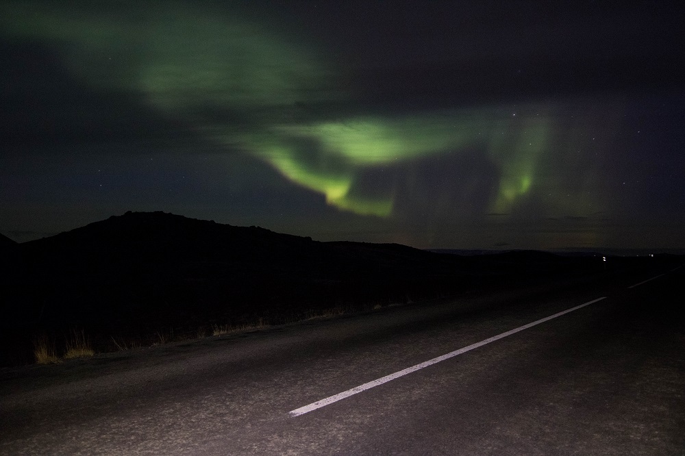 A Sudavik, nous sommes accueillis par un couple de français installés ici depuis des années. Rencontrés via Air BnB, ils ont eu la gentillesse de repousser la fermeture du guesthouse pour nous. Ce soir, ils nous entrainement pour un cours de photo de nuit. Stephanie et Rodolphe prennent leur temps, vérifient notre matériel, se renseignent, conseillent… Ils passent près d’une heure avec nous avant même le début de l’excursion. On embarque finalement avec eux dans la nuit noire et froide pour tout apprendre de la photo de nuit. Un moment parfait, plein d‘astuces, de conseils et d’exemples. Nous restons plusieurs heures dehors à explorer toutes les possibilités tout en devinant de timides aurores boréales dans le ciel. Il est presque 2h du matin lorsque nous rentrons. On s’écroule après une journée de 20h dans nos couettes moelleuses et douillettes. Demain matin, il faudra se lever avant le soleil.