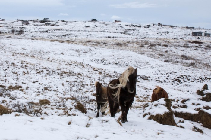 Au milieu de nulle part, l’auberge de Heydalur est entourée de grandes prairies ou se promènent des dizaines de poneys. On s’arrête au restaurant à l’intérieur tout en bois en plein après-midi, accueillis par deux adorables chiens, un perroquet bavard et une petite grand-mère. Elle nous sert du poisson pêché dans le ruisseau voisin directement après notre commande (on la voit nous le ramener dans une grande bassine !) et une cargaison de pommes de terre. Un bonheur après tant de route.