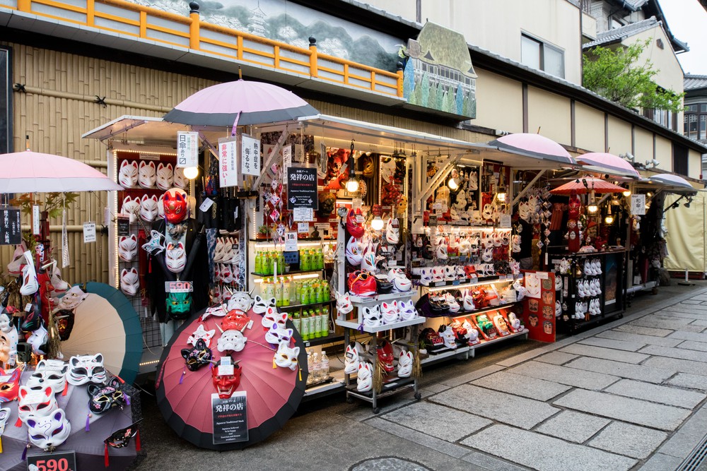 Nous voilà de retour dans Gion, quartier plein de charme constitué de ruelles tortueuses bordées de ryokan, de maisons de thé et de bâtiments anciens abritant diverses boutiques, vaut effectivement le détour. Après une visite un peu entachée par la foule, nous avons pris le parti d’y revenir, tôt le matin, et n’avons pas un instant regretté ce choix !